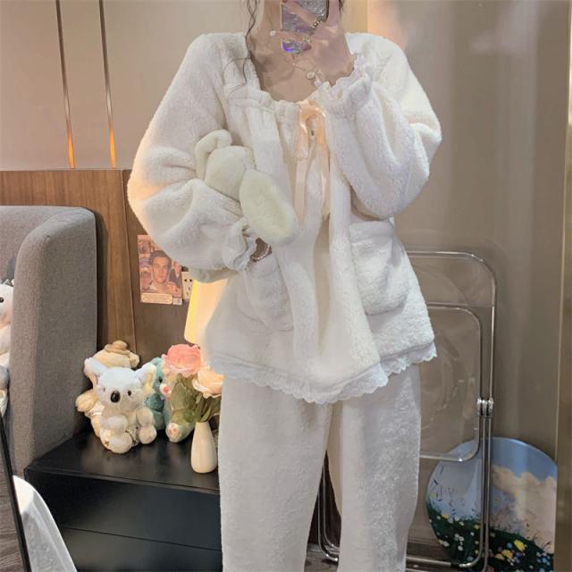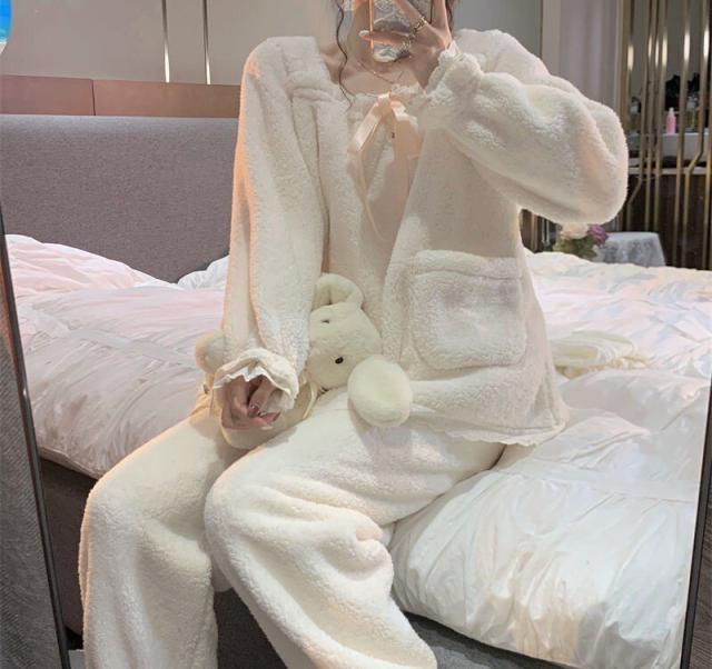 ルームウェア レディース パジャマ 部屋着 2点セット 上下セット セット パンツ 長ズボン M L XL 2XL アイボリー もこもこ ふわふわ 秋 冬 あったか レース リボン 大人カラー 無地 長袖 ふんわり袖 スクエアネック リラックス ロング丈 ロング ゆったり ゆる ルーズ 体型カバー 着やせ ナチュラル ガーリー フェミニン キュート レトロ ロマンチック 大人可愛い 大人 お泊り デート 休日 存在感 主役級 清楚 清潔感 華やか シンプル ベーシック 定番 王道 学生 韓国 オルチャン