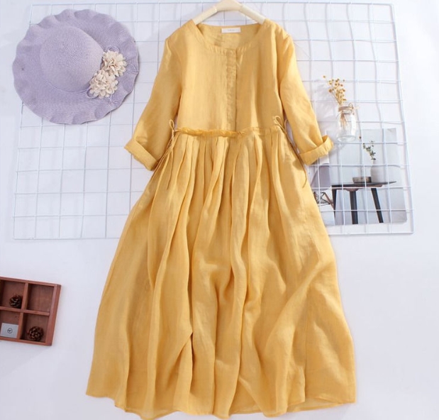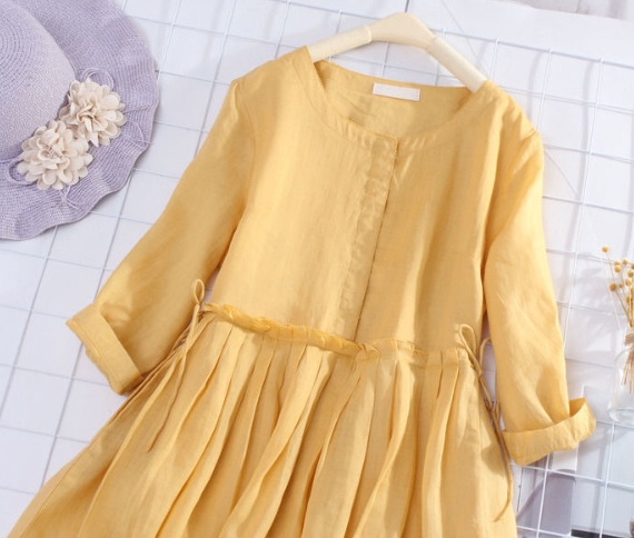 ワンピース フレアワンピース ロング丈 袖あり 長袖 ラウンドネック 襟なし Aライン プリーツ リボン ウエストリボン ポケット リネン 薄手 大人可愛い きれいめ シンプル カジュアル 上品 お洒落 大人女子 こなれ感 ラフ キュート とろみ感 カントリー 無地 春 10代 20代 30代 レディース 女性用 ママ 女の子 学生 デート お出かけ 女子会 休日 リゾート 旅行 海 ガーデン 散歩 サイズ M L XL 2XL 3XL 大きいサイズ ゆったり ブルー イエロー 春カラー