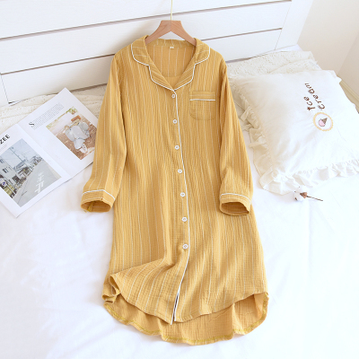 パジャマ ワンピース 3色 長袖 レディース ストライプ オープンカラー 春 秋 夏 きれいめ 上品 お洒落 オシャレ かわいい 大人可愛い 薄手 綿 コットン シャツワンピース 前開き ポケット ボタン 花 フラワー Iライン ストレート 体型カバー 細見え 着痩せ 楽ちん ラフ シンプル カジュアル ピンク 白 ホワイト 黄色 イエロー 七分袖 膝丈 膝下 旅行 お泊まり プレゼント ギフト 20代 30代 40代 50代 ゆったり 大きめ 大きいサイズ М L XL 部屋着 ルームウエア リラックス