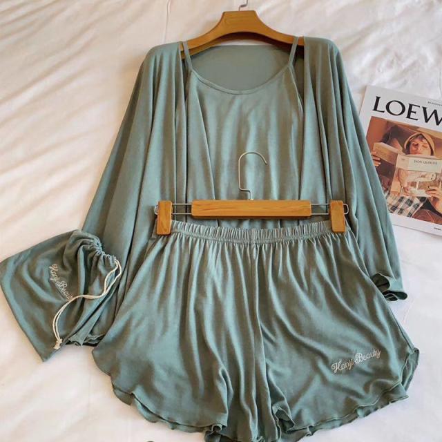 キャミソール、ショートパンツ、カーディガン、巾着のお得な4点セットです。