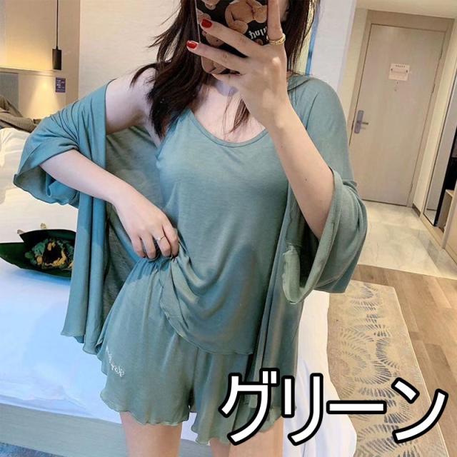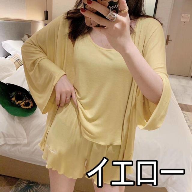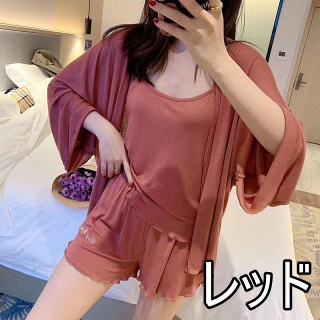 パジャマ 4点セット お得 4色 レディース 上下セット キャミソール ショートパンツ カーディガン 巾着 無地 シンプル きれいめ セクシー 春 夏 秋 薄手 羽織 大きめ 大きいサイズ ゆったり М L XL 2XL くすみカラー 緑 レッド 赤 黒 ブラック グリーン 黄色 イエロー 長袖