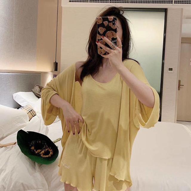 パジャマ 4点セット お得 4色 レディース 上下セット キャミソール ショートパンツ カーディガン 巾着 無地 シンプル きれいめ セクシー 春 夏 秋 薄手 羽織 大きめ 大きいサイズ ゆったり М L XL 2XL くすみカラー 緑 レッド 赤 黒 ブラック グリーン 黄色 イエロー 長袖 七分袖 膝上 お揃い SNS インスタ映え プレゼント ギフト ルームウェア 部屋着 かわいい 大人可愛い オシャレ お洒落 韓国 トレンド 流行 旅行 お泊まり ラフ こなれ感 お買い得 無地 シンプル 着回し