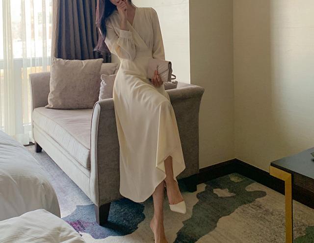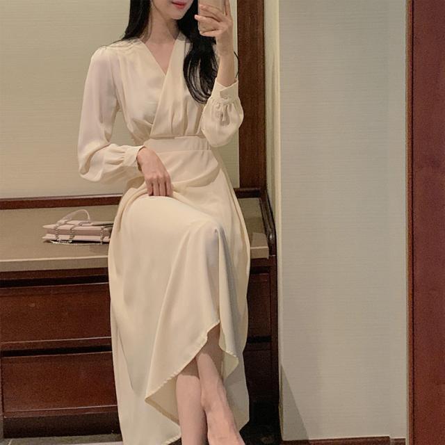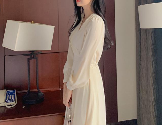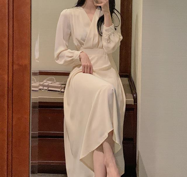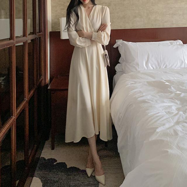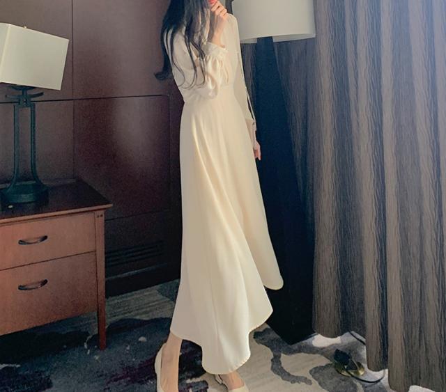 秋 ハイウエスト ドレス ドレス ワンピース パーティドレス ロングドレス 舞台ドレス Aラインドレス ワンピドレス ロング丈 袖あり 長袖 Vネック 襟なし Aライン ルーズウエスト ファスナー ハイウエスト 透け感 異素材MIX 大人可愛い 上品 お洒落 大人女子 ルーズ エレガント フォーマル カジュアル お嬢様 無地 20代 30代 レディース 女性用 ママ 女の子 OL 通勤 学生 デート 女子会 パーティー イベント レストラン ファッション インスタ映え 秋 S M L XL アプリコット