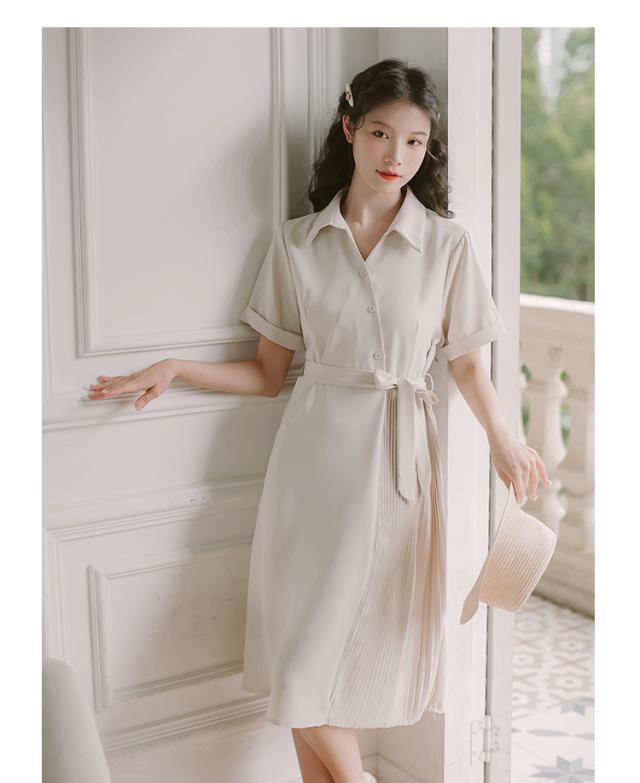 ワンピース 襟付き 半袖 フレンチワンピース Vネック ウエストマーク ベルト リボン かわいい 大人可愛い きれいめ シンプル カジュアル 大人 上品 おしゃれ お洒落 かっこいい レトロ アジアン エスニック エキゾチック 大人可愛い 大人女子 こなれ感 ラフ キュート ガーリー ルーズ 個性的 クール モード系 セクシー エレガント モダン 主役級 存在感 とろみ感 抜け感 春 秋 10代 20代 30代 女性用 ママ デート お出かけ 公園デビュー 女子会 休日 アウトドア 旅行 ガーデン 着回