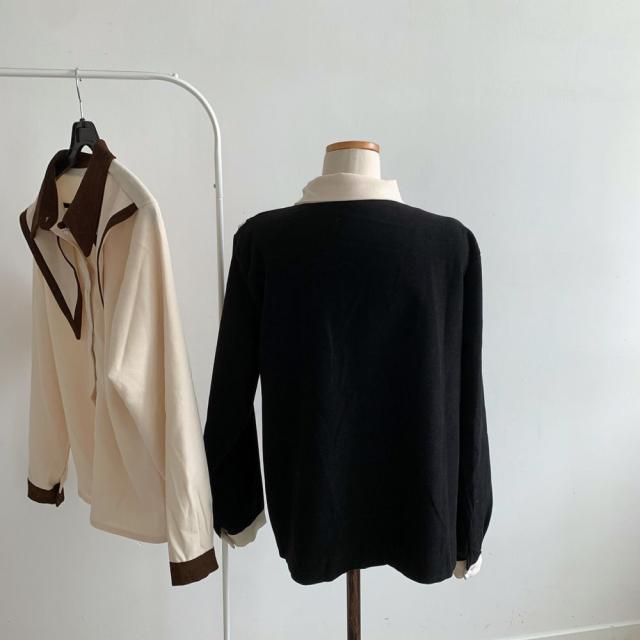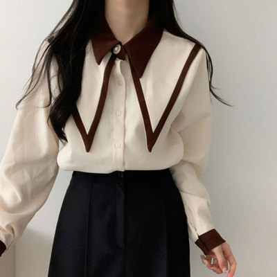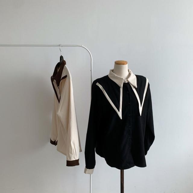 トップス カットソー バイカラー ビッグ襟 レディース 2色 ブラウス 長袖 オシャレ お洒落 かわいい 大人可愛い 大人女子 トレンド 流行 韓国 スクール 学生 制服 コスプレ 黒 ブラック 白 ホワイト ベージュ 前開き ボタン 20代 30代 10代 春 秋 冬 萌え袖 エレガント ゴージャス 高級感 上品 きれいめ 小顔 量産型 ロリータ 姫系 レトロ アンティーク ヴィンテージ クラシック 無地 双子 お揃い 色違い 個性派 個性的 存在感 主役 モノトーン プチプラ