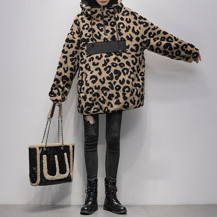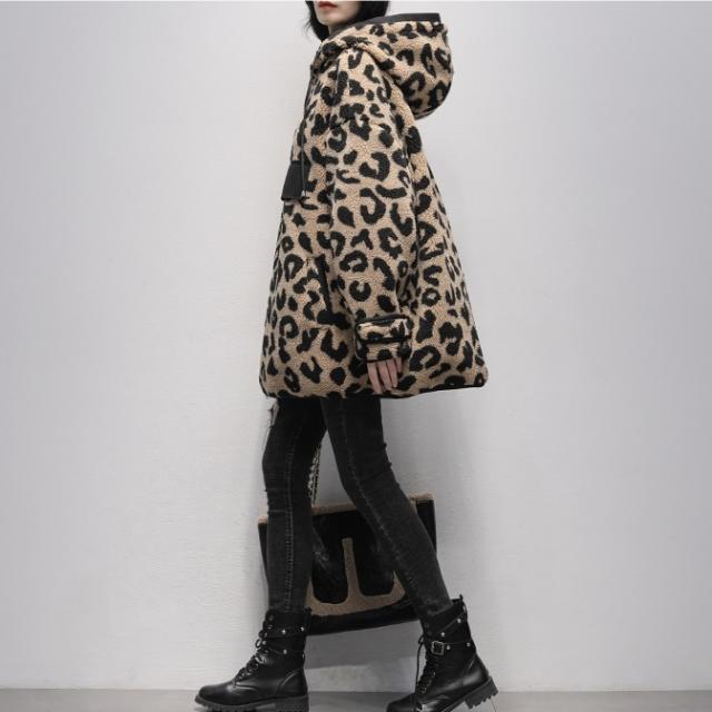 アウター ジャケット ボア パーカー 長袖 レディース フード付き バイカラー 異素材 ドッキング レオパード ヒョウ柄 高級感 エレガント L 総柄 ホワイト 白 ブラウン 茶色 10代 20代 30代 40代 シンプル カジュアル 普段着 普段使い 春 秋 冬 女子会 モテ デート 映え SNS インスタ 韓国 流行 トレンド 個性的 個性派 こなれ感 かわいい 大人可愛い ラフ ワイド もこもこ ふわふわ 暖かい あったか ゆる オーバーサイズ ファスナー ショート丈 ミニ丈 Iライン ストレート