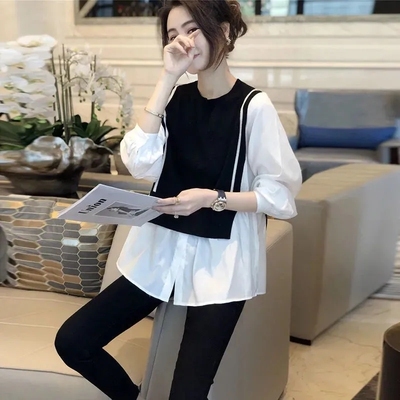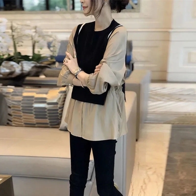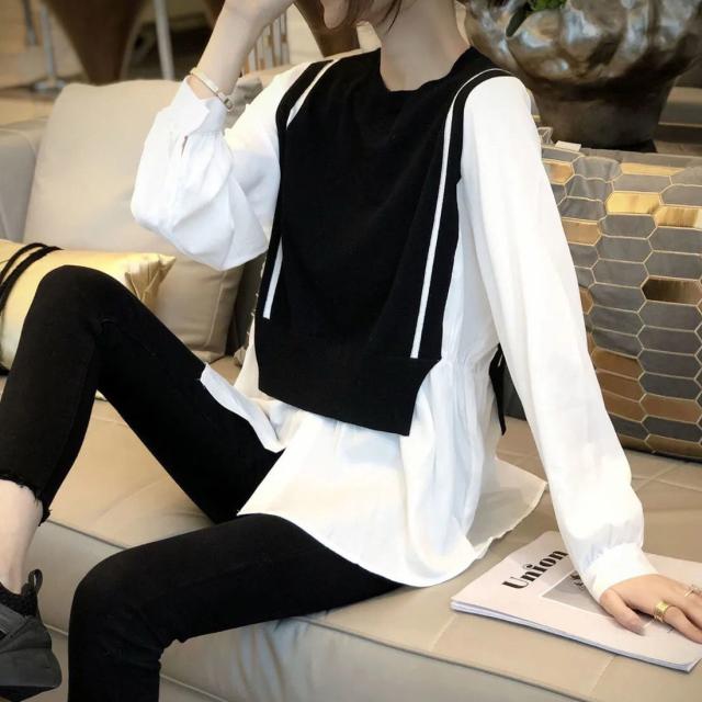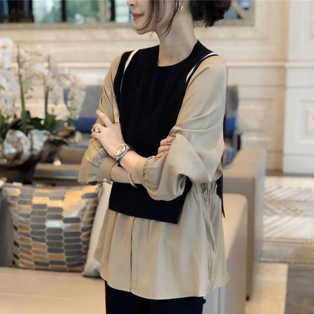 トップス ブラウス 切り替え ドッキング レディース 長袖 大きいサイズ 大きめ ゆったり L XL 2XL 3XL 重ね着 ラウンドネック ベスト ニット お洒落 オシャレ カジュアル こなれ感 春 秋 ウエスト くびれ 着痩せ 細見え 体型カバー かわいい 大人可愛い きれいめ 上品 レトロ 30代 40代 50代 20代 エキゾチック 個性派 個性的 ギャザー 無地 ホワイト 白 ブラウン 茶色 シック 普段着 普段使い お出かけ 買い物 女子会 休日 モード 秋カラー