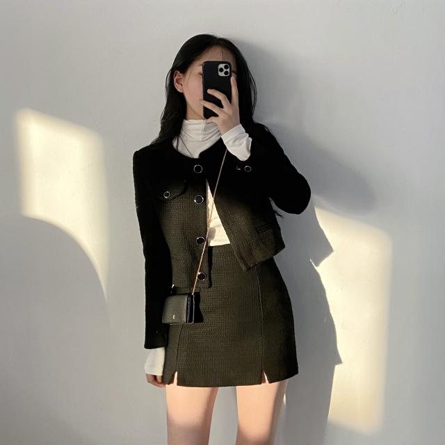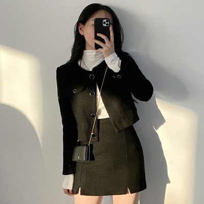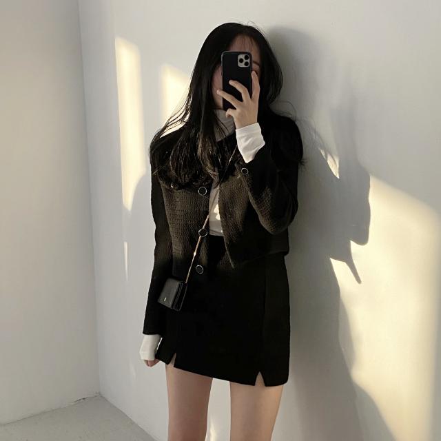 セットアップ 上下セット ツイード ジャケット ミニスカート 長袖 レディース きれいめ エレガント 高級感 ミニ丈 ショート丈 セクシー 黒 ブラック 10代 20代 30代 シンプル カジュアル 普段着 普段使い タイト スリム 細身 かわいい 大人可愛い オシャレ お洒落 春 秋 冬 脚長 美脚 韓国 トレンド 流行 デザイン お得 お買い得 女子会 デート 映え SNS パーティー お呼ばれ シック モダン ヴィンテージ ハイウエスト 脚長 美脚 春 秋 冬 着回し 2点セット スリット