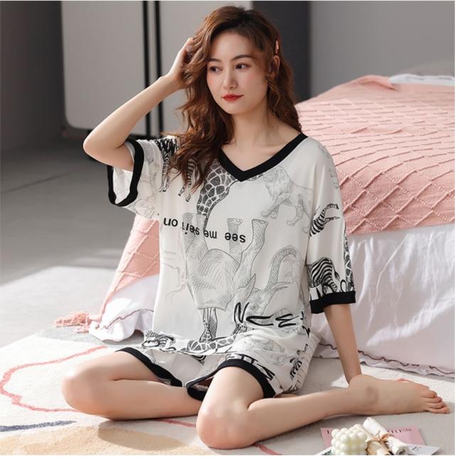 3色展開5分袖Tシャツとショートパンツの上下パジャマセット。