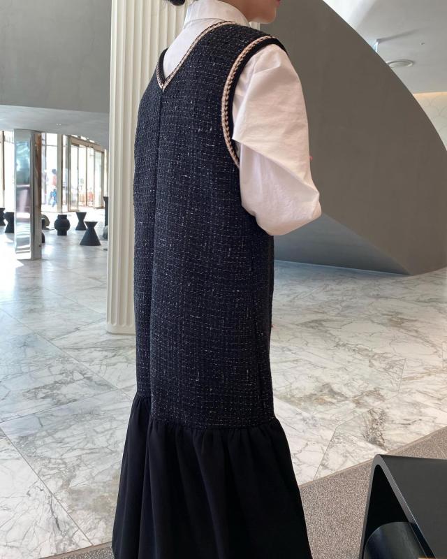ツイードとパールボタンが華やか◎
