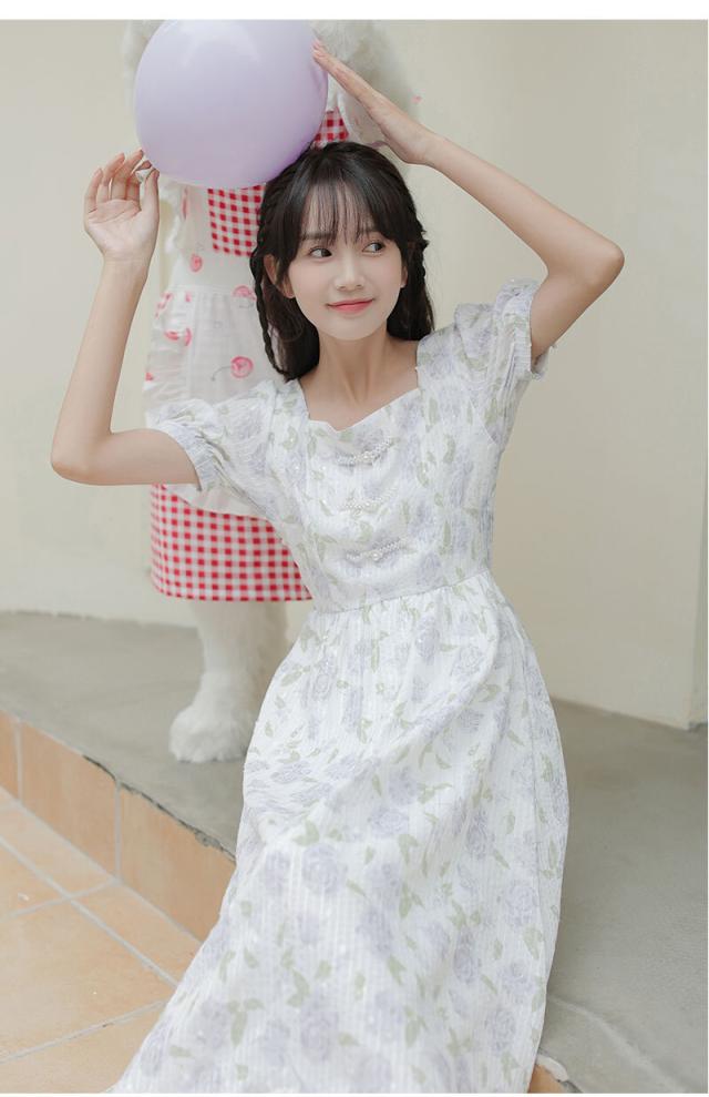 ロングワンピース ワンピース フレアワンピース フレア スクエアネック かわいい 大人可愛い きれいめ シンプル カジュアル 大人 上品 おしゃれ お洒落 かっこいい レトロ アジアン エスニック エキゾチック 大人可愛い 大人女子 こなれ感 ラフ キュート ガーリー ルーズ