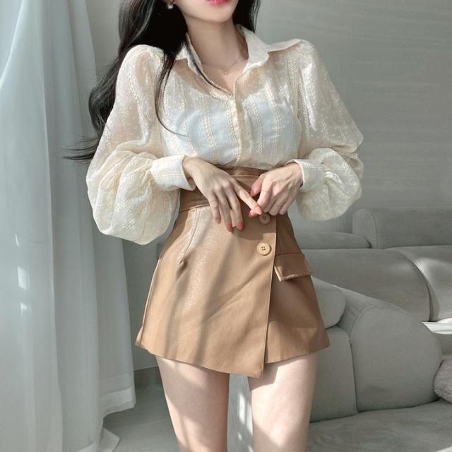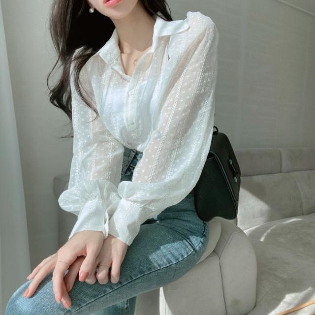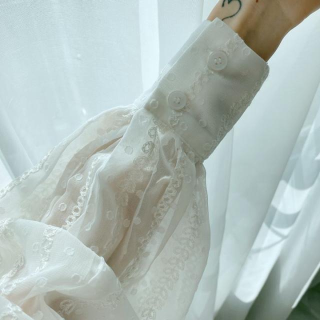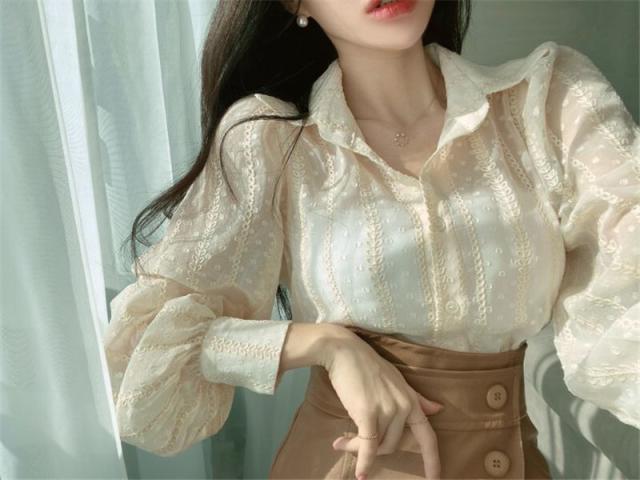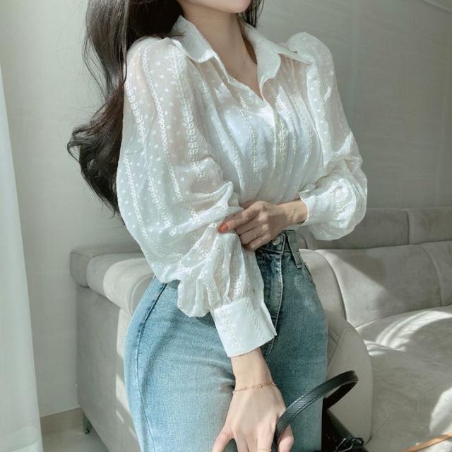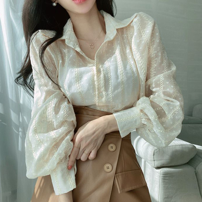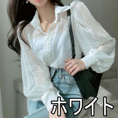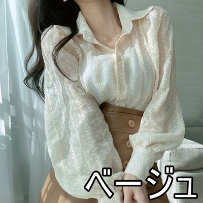 トップス ブラウス 3色 シアー 長袖 レディース ランタンスリーブ 透け感 重ね着 春 夏 秋 ボリューム 刺繍 かわいい 大人可愛い 大人女子 ガーリー キュート お洒落 オシャレ こなれ感 シンプル カジュアル ラフ エレガント きれいめ 上品 セクシー 高級感 ベージュ 白 黒 ホワイト ブラック ぽわん ふんわり ゆったり 大きめ 大きいサイズ 体型カバー 着痩せ 細見え 韓国 流行 トレンド 前開き ボタン オープンカラー 映え SNS デート 女子会 買い物 お出かけ 抜け感 とろみ