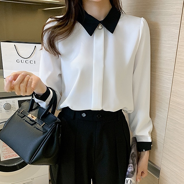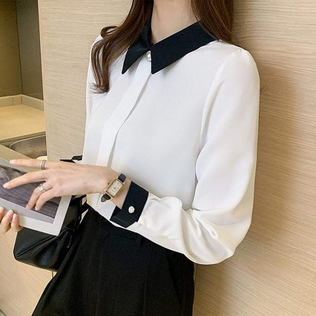 トップス ブラウス バイカラー 長袖 スタンドカラー レディース きれいめ 上品 エレガント 清楚 知的 美人 パール ボタン比翼 仕立て 大きいサイズ 大きめ S М L XL 2XL 体型カバー 着痩せ 細見え お洒落 オシャレ かわいい 大人可愛い レトロ アンティーク ヴィンテージ クラシカル ОL オフィス 仕事 通勤 入園 入学式 卒業式 卒園式 量産型 20代 30代 40代 10代 無地 ホワイト 白 黒 ブラック モノクロ フォーマル こなれ感 シック 着回し 映え SNS 韓国 流行
