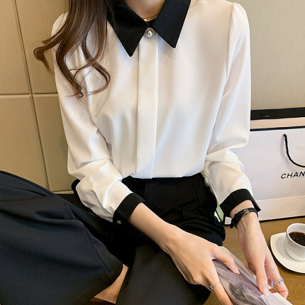 バイカラーがおしゃれなブラウスです。