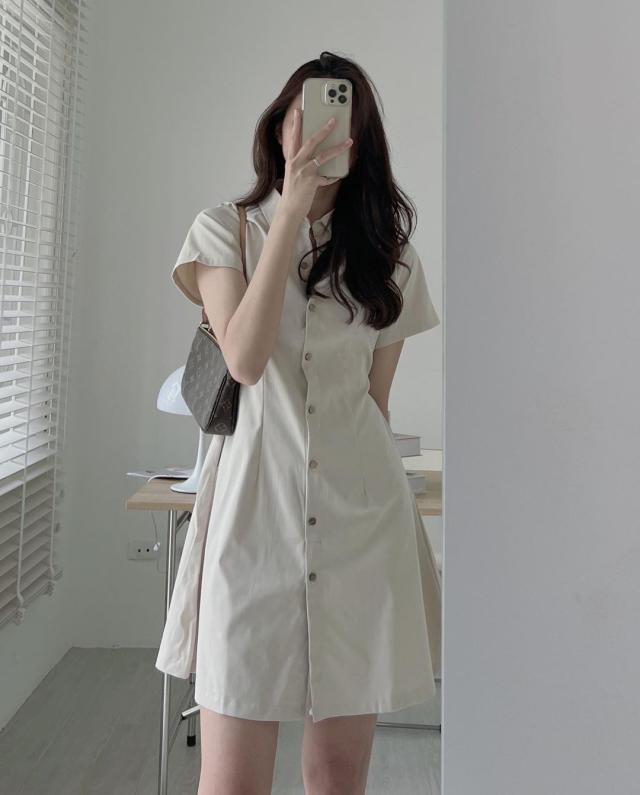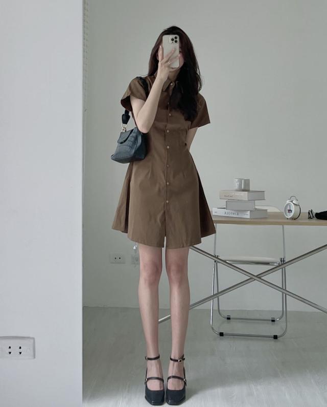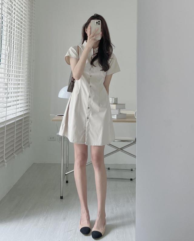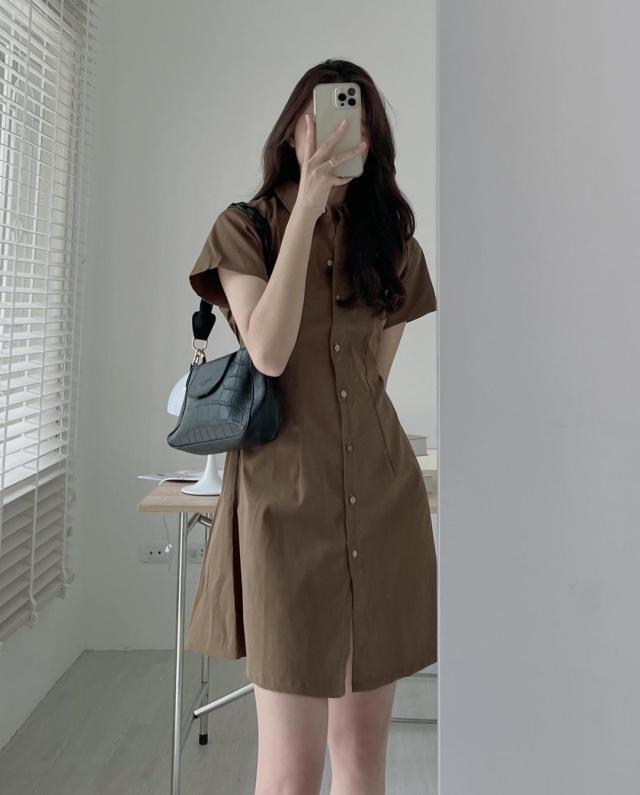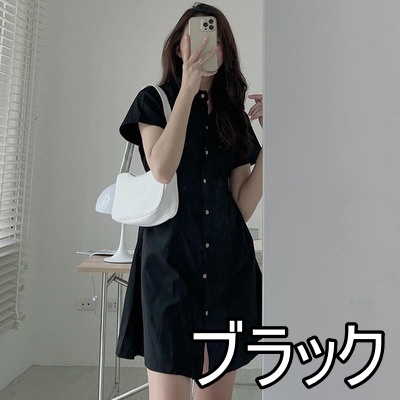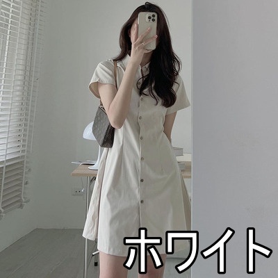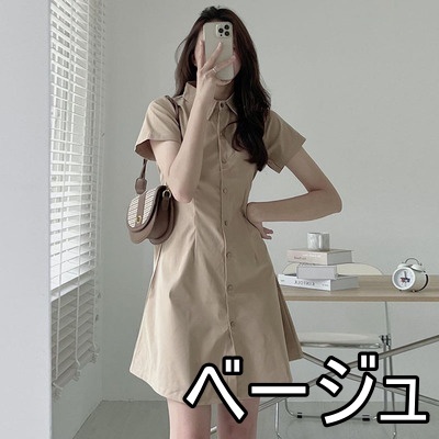 ワンピース 4色 半袖 シャツワンピース レディース Aライン ミニ丈 ショート丈 春 夏 無地 タイト スリム 細身 ベージュ ブラック 黒 ブラウン 茶色 ホワイト 白 襟付き くびれ 細見え 華奢 着痩せ 脚長 美脚 ハイウエスト スタンドカラー きれいめ 上品 シンプル カジュアル かわいい 大人可愛い お洒落 オシャレ 薄手 前開き ボタン タック 10代 20代 30代 トレンド 韓国 流行 お出かけ 買い物 休日 着回し 楽ちん ラフ こなれ感 クール モード お揃い 色違い 双子