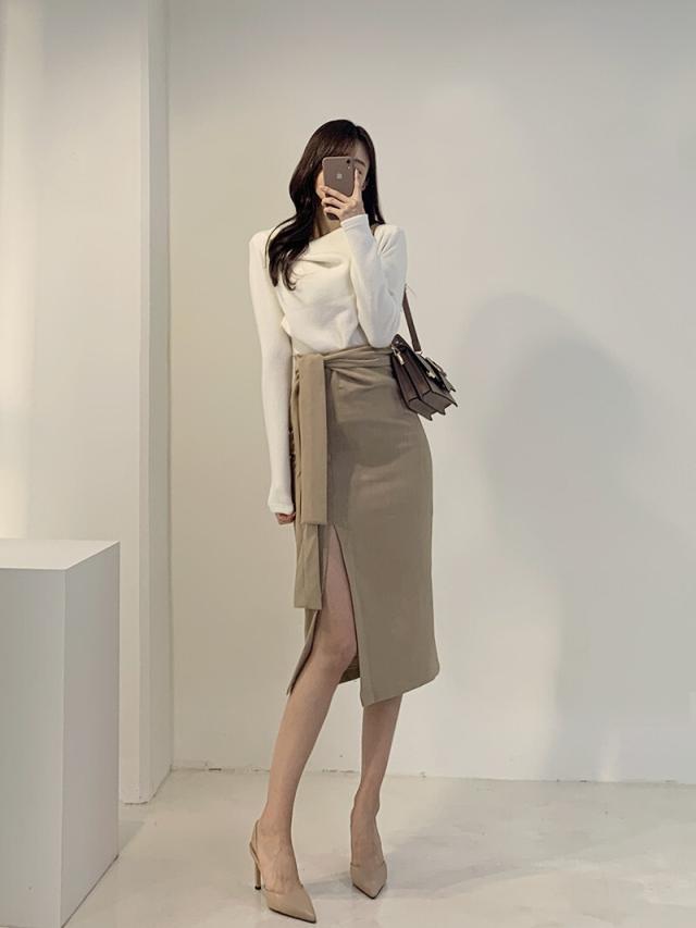 少しだけ見えるデコルテが、上品なセクシーさを演出してくれます。