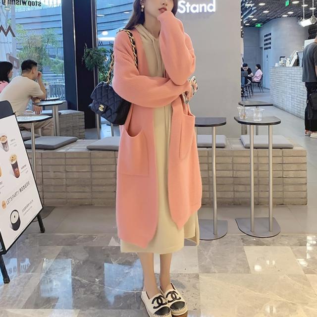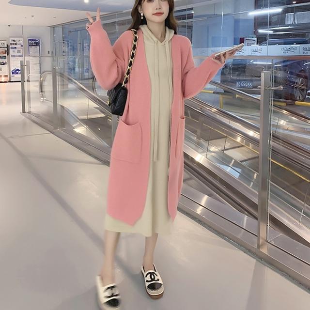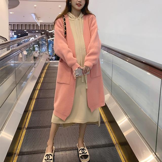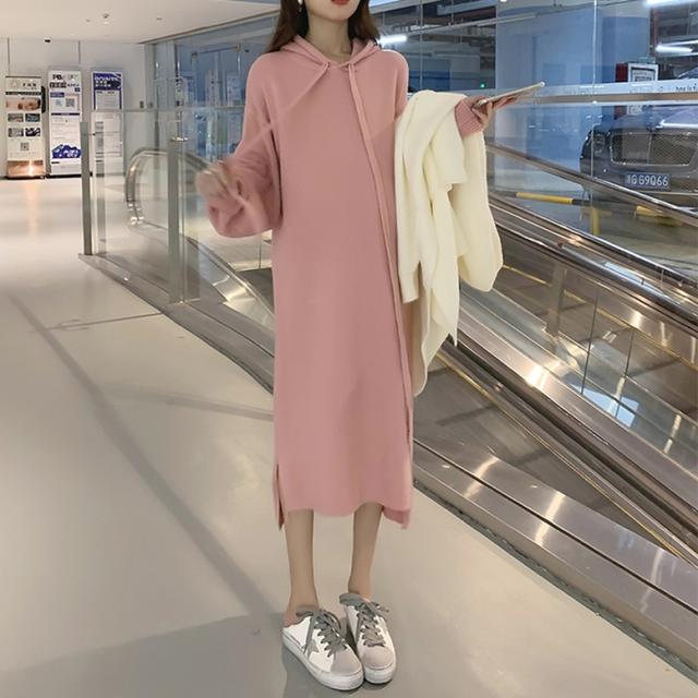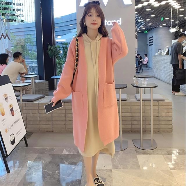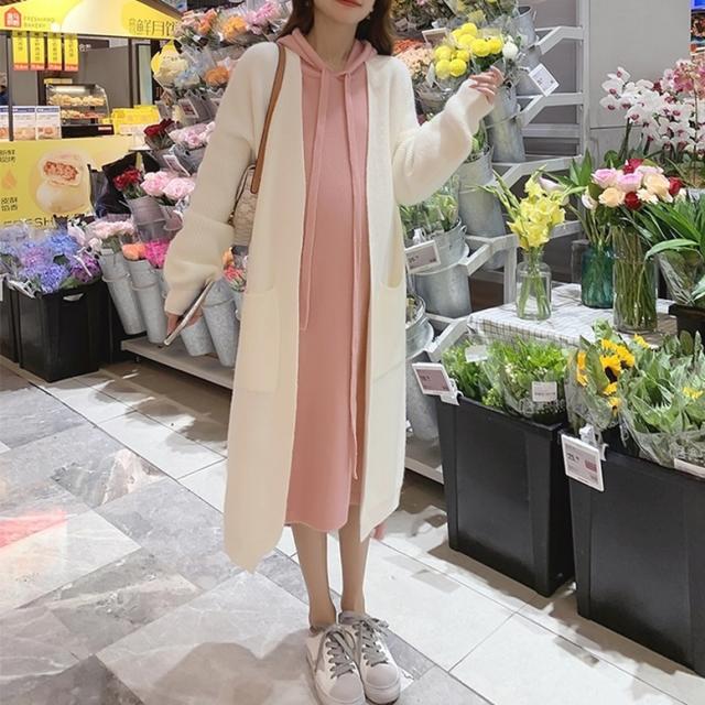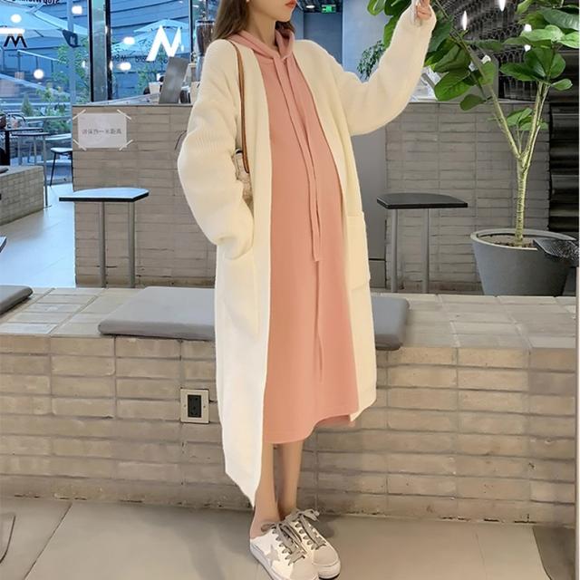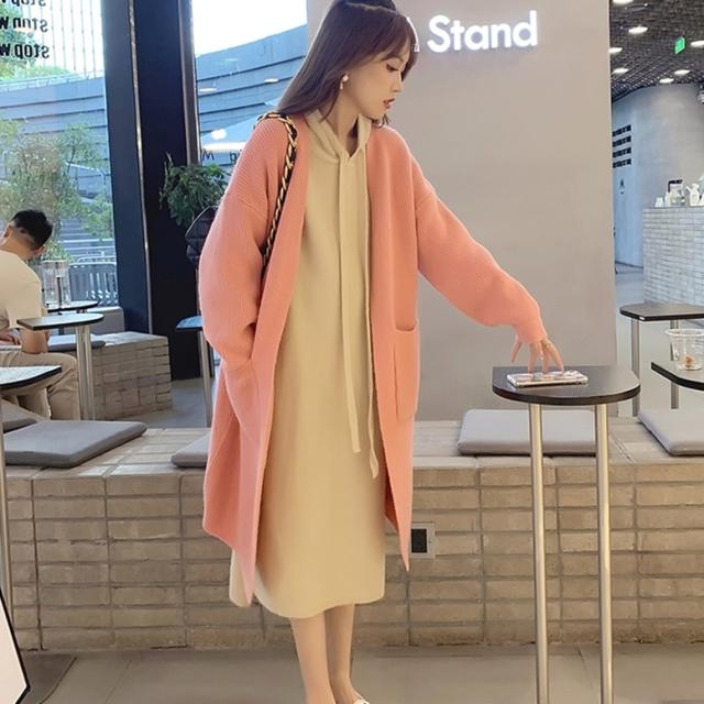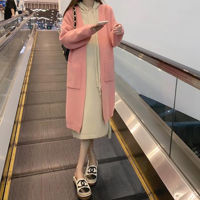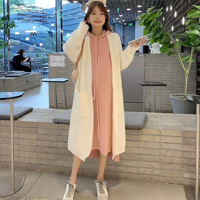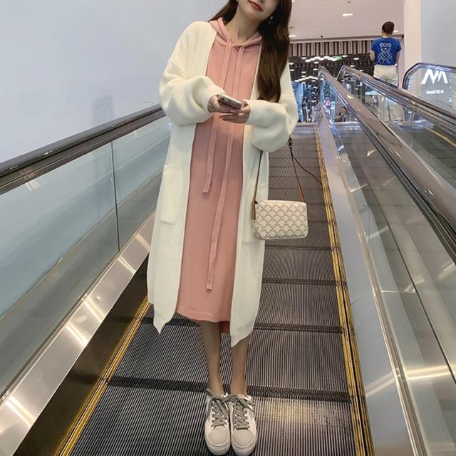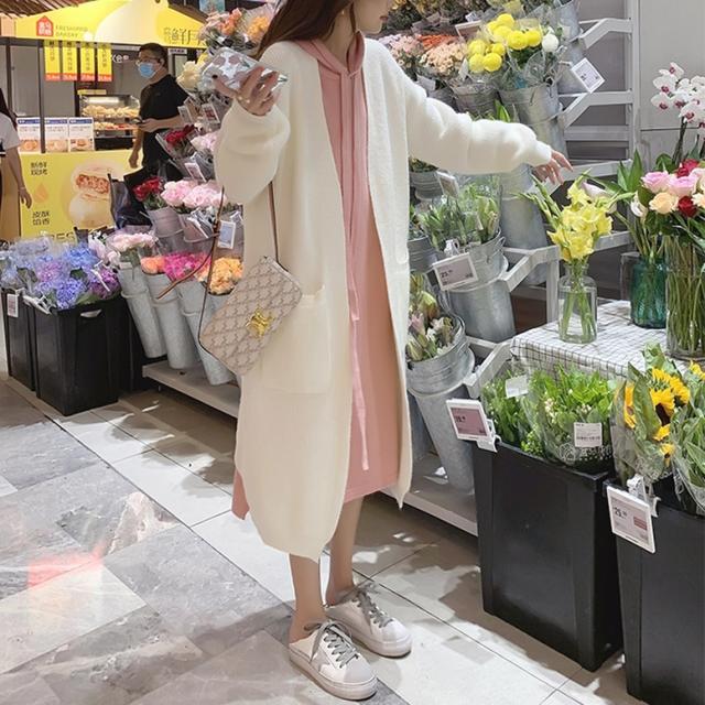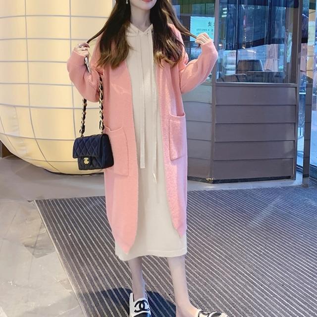 ロングカーディガンとパーカーワンピースのニットセット