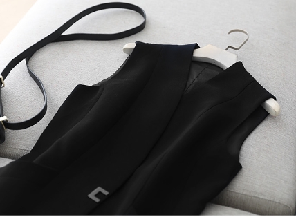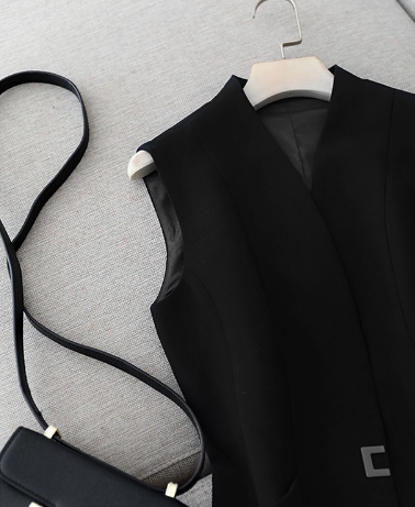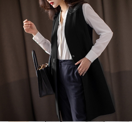 ロングジレ トップス アウター ベスト コート ロング丈 袖なし ノースリーブ Vネック 襟なし スリム スマート ウエストマーク ポケット 前開き 薄手 大人可愛い きれいめ シンプル 大人 上品 おしゃれ かっこいい 大人女子 クール モード系 エレガント モダン フォーマル 無地