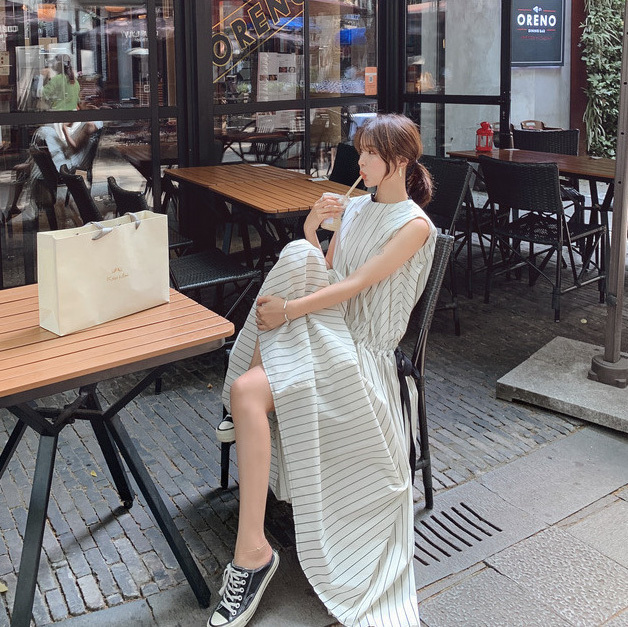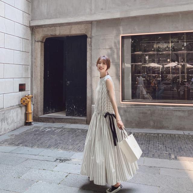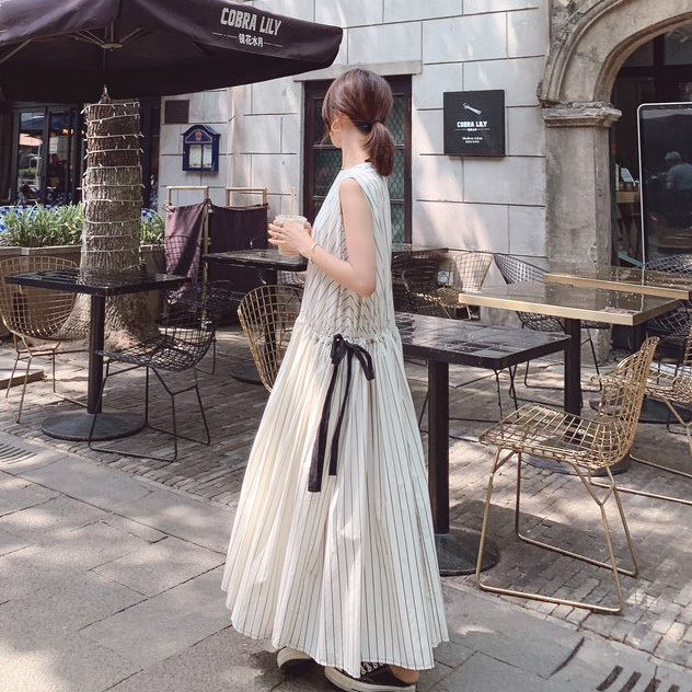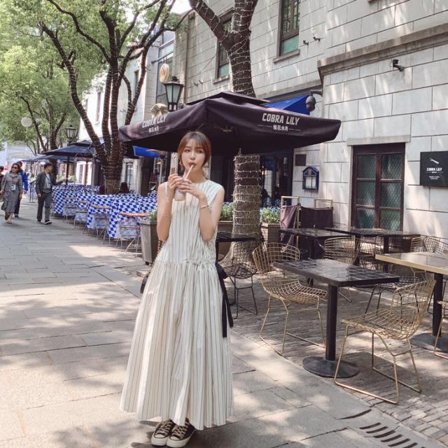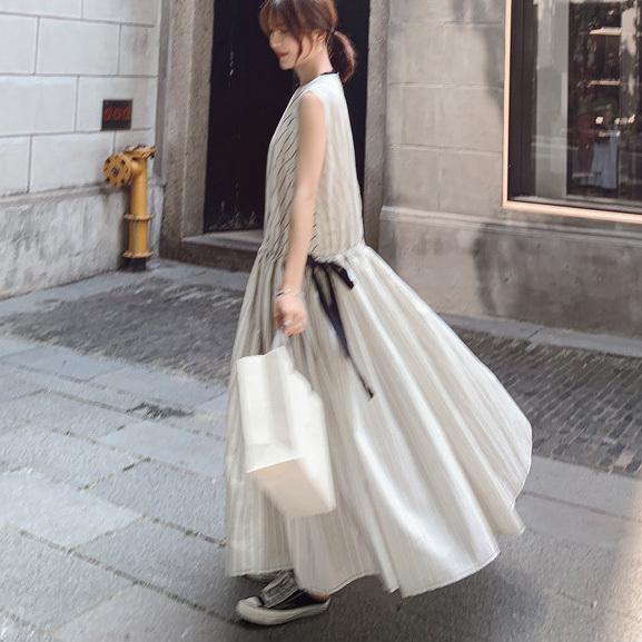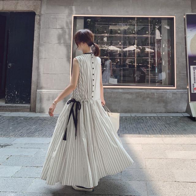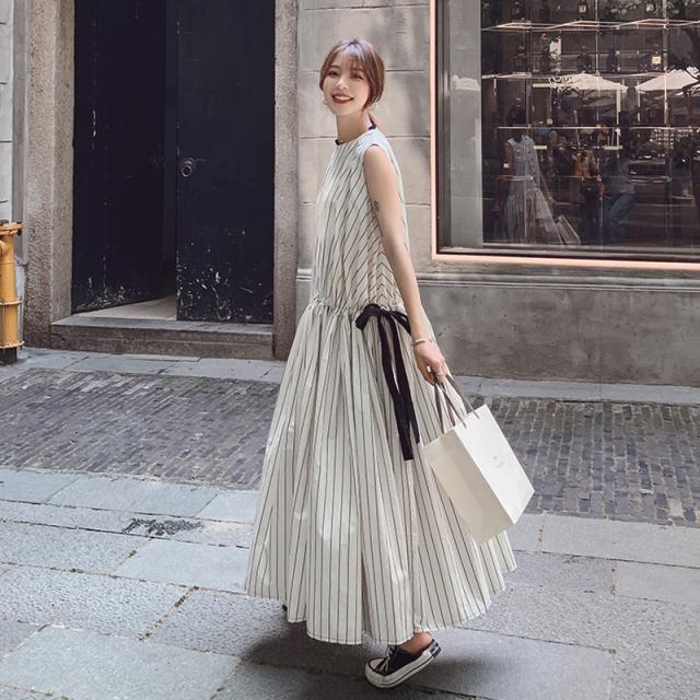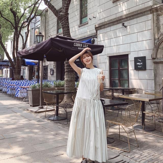 夏 フランス レトロ スカート ワンピース プルオーバー ロングスカート ワンピドレス ロング丈 袖あり ノースリーブ ラウンドネック 襟なし レギュラー ふわふわ タイプA ルーズウエスト 異素材MIX かわいい 大人可愛い 大人 上品 おしゃれ 大人女子 スポーティー ルーズ