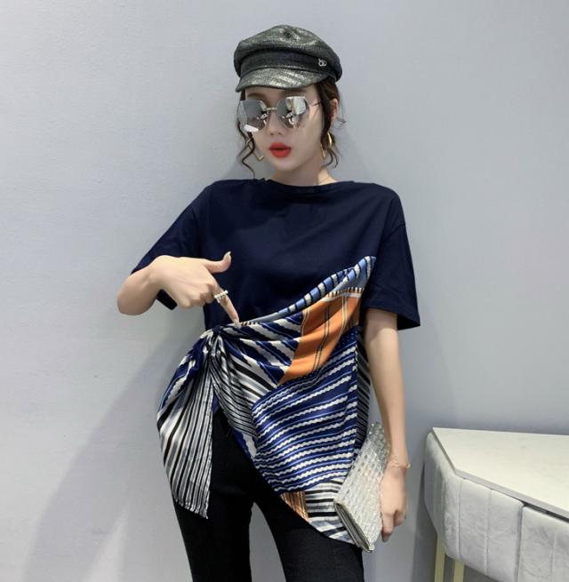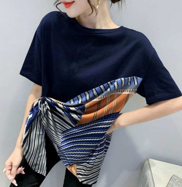 夏 ファッション Tシャツ トップス Tシャツ シャツ ショート丈 袖あり 半袖 ラウンドネック 襟なし ふわふわ 異素材MIX かわいい 大人可愛い シンプル 大人 お洒落 こなれ感 ボーイッシュ ルーズ 無地 夏 10代 20代 レディース 女性用 ママ 女の子 オフィス ビジネス OL 通勤 学生 通学 お出かけ お泊まり アウトドア イベント レストラン 着回し スタイル 楽ちん モテ インスタ映え S M L XL 2XL 3XL ブルー カーキ