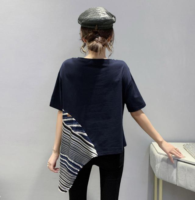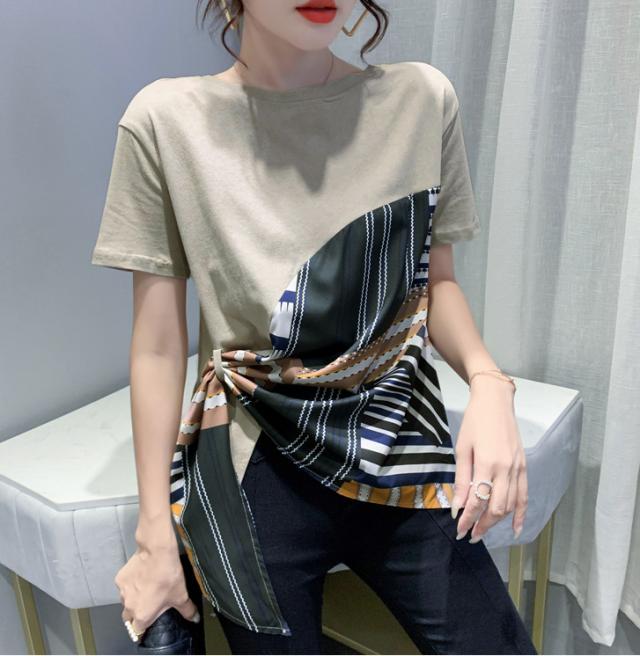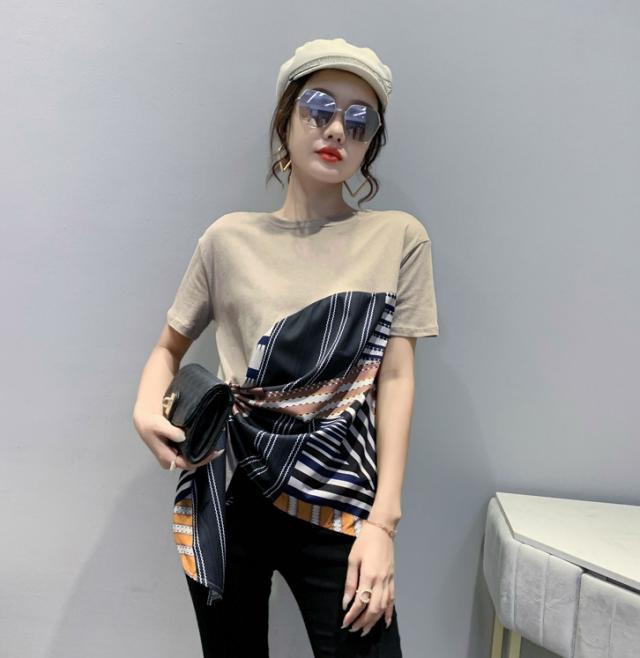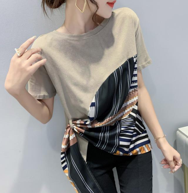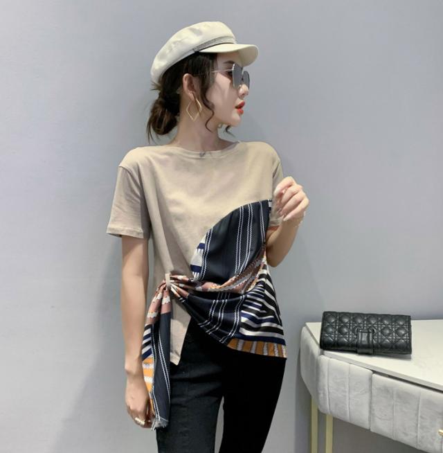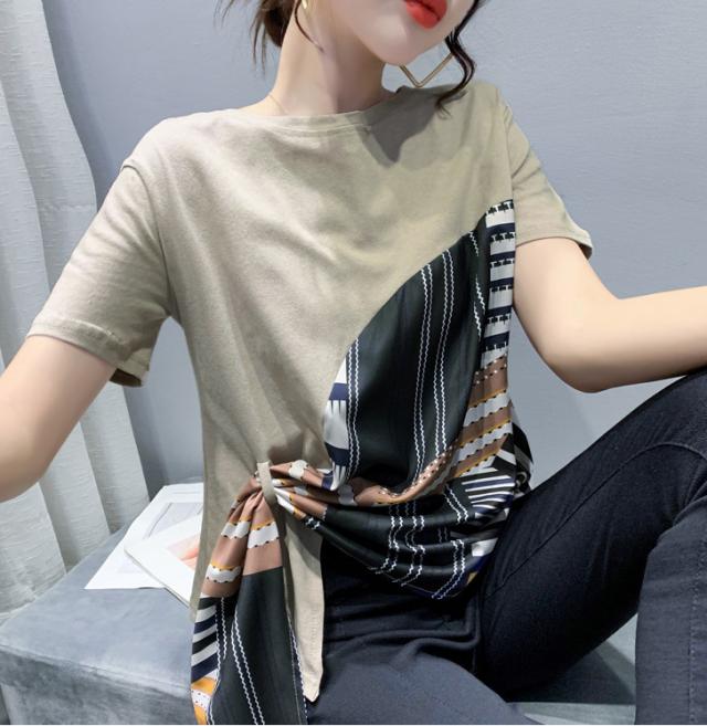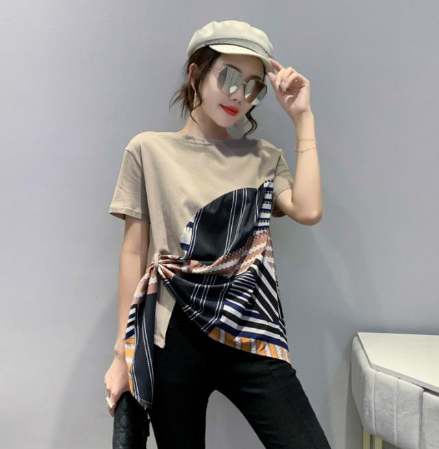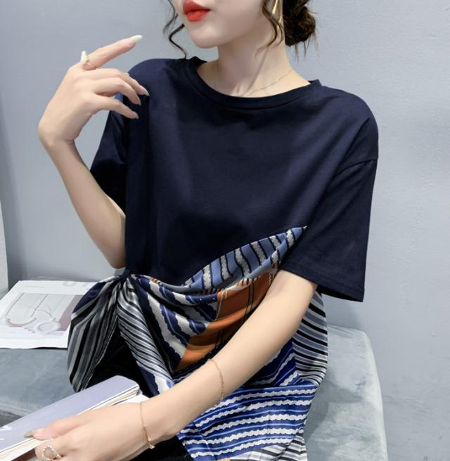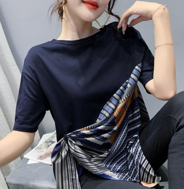 夏 ファッション Tシャツ トップス Tシャツ シャツ ショート丈 袖あり 半袖 ラウンドネック 襟なし ふわふわ 異素材MIX かわいい 大人可愛い シンプル 大人 お洒落 こなれ感 ボーイッシュ ルーズ 無地 夏 10代 20代 レディース 女性用 ママ 女の子 オフィス ビジネス OL 通勤