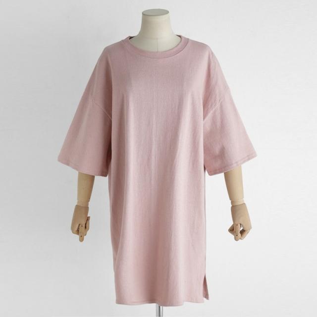 オーバーシャツチュニック ワンピース トップス レディース チュニック シャツ プルオーバー ビッグシルエット 半袖 半端袖 クルーネック ショート丈ワンピ ロングシャツ ドロップショルダー ピンク 大人可愛い きれいめ 上品 エレガント フォーマル ガーリー マニッシュ