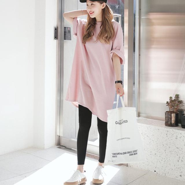 レギンスやスキニーはもちろんショートボトムを履いてミニワンピ風に着こなすのもおすすめ