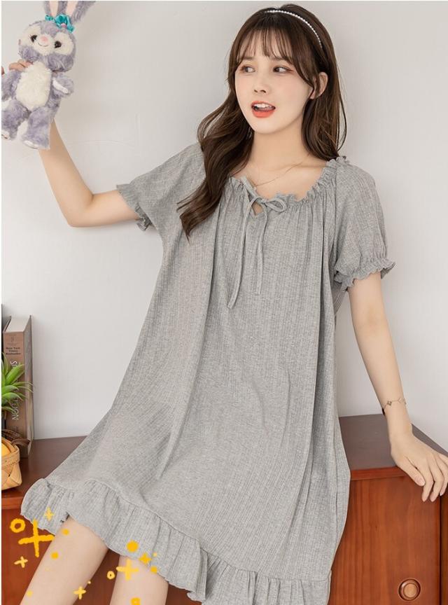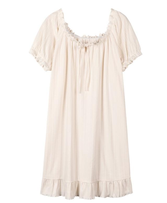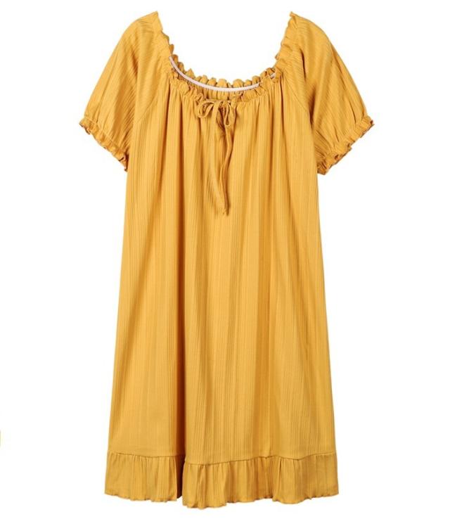 ルームウェア レディース ナイトドレス ネグリジェ パジャマドレス パジャマ ワンピース M L XL 2XL グレー 灰色 イエロー 黄色 ベージュ 大人カラー くすみカラー 春 夏 半袖 パフスリーブ Vネック フリル リボン ギャザー 無地 部屋着 リラックス ミドル丈 ミドル 膝丈 フレア Aライン ゆったり ゆる ルーズ 体型カバー 着やせ フェミニン ナチュラル キュート ガーリー レトロ シンプル ベーシック 定番 大人 大人可愛い 存在感 主役級 デート 休日 お泊り 韓国 オルチャン