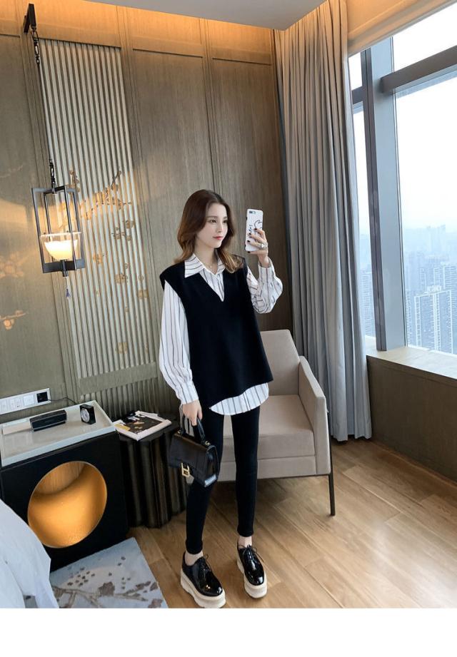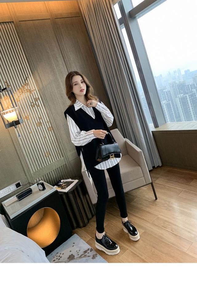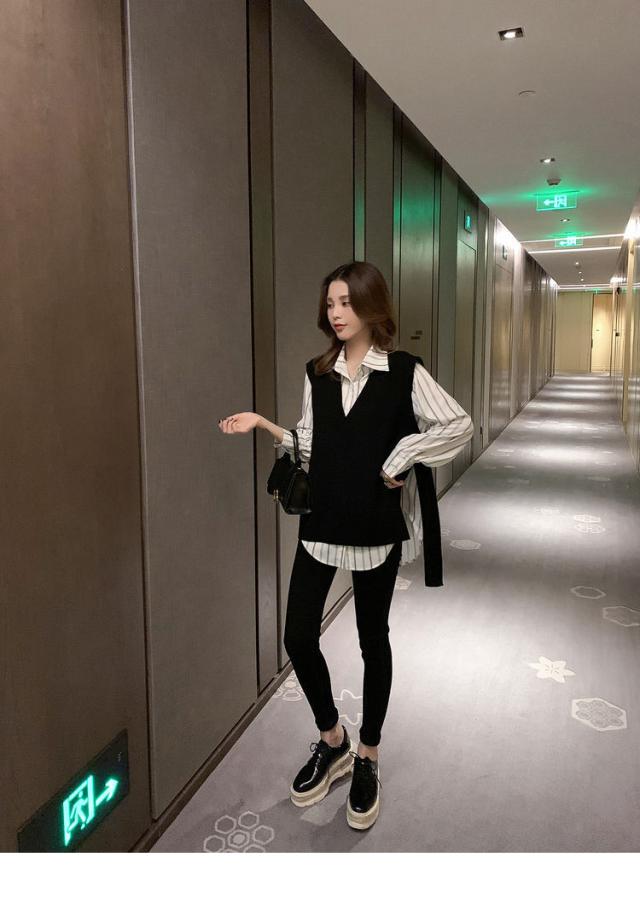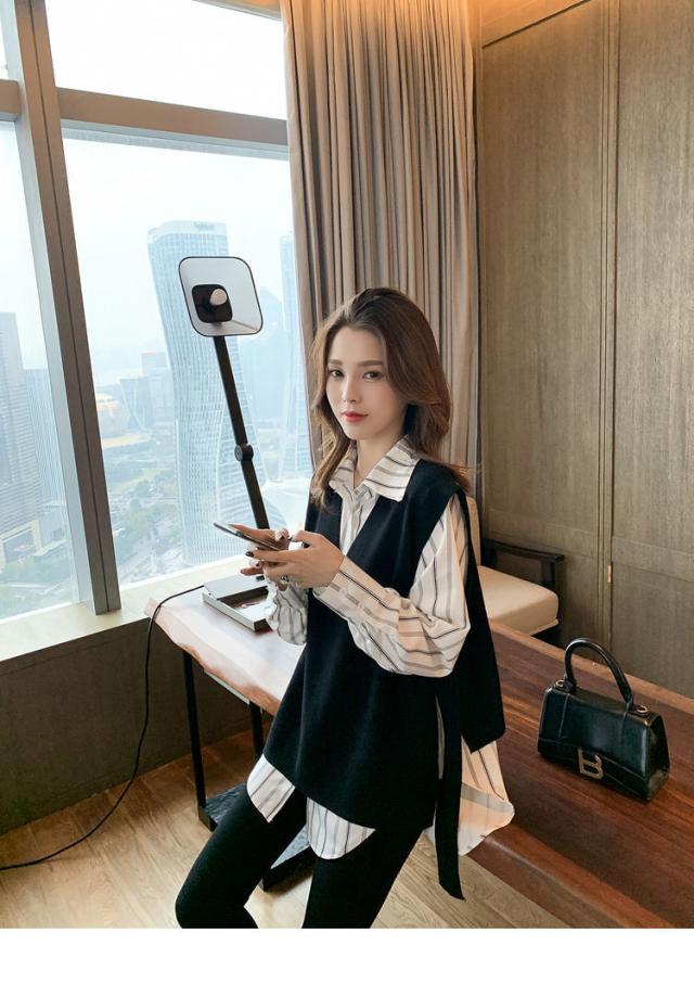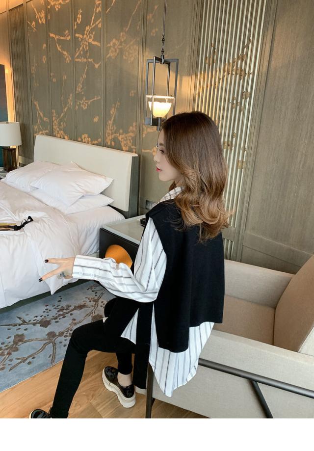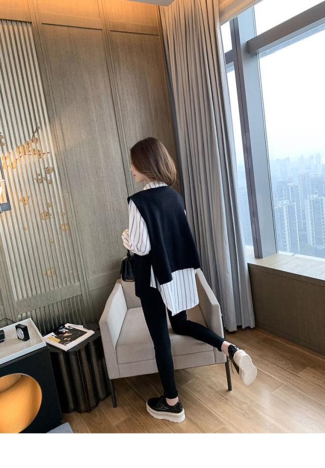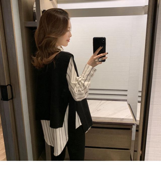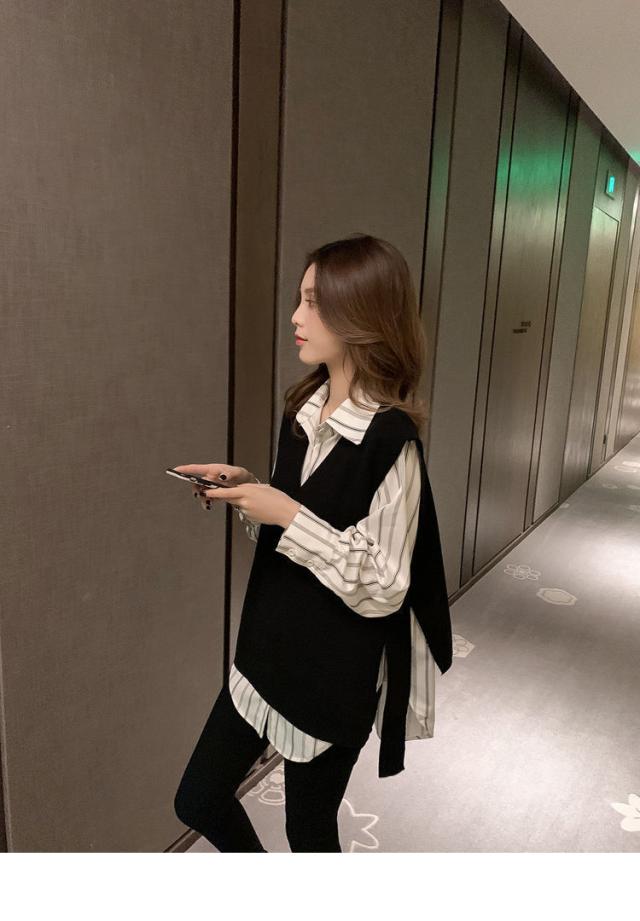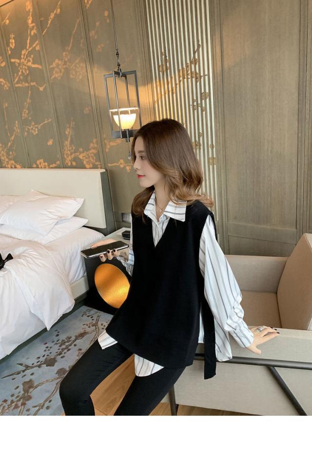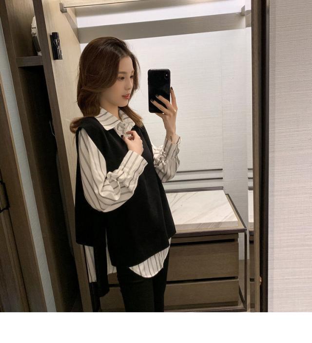 2点セット ツーピース トップス シャツ ブラウス ニットソー ベスト 袖あり ノースリーブ 長袖 Vネック 襟付き 角襟 ワイド 伸縮性 ポリエステル 大人可愛い きれいめ おしゃれ 大人女子 こなれ感 個性的 クール モード系 柄 ストライプ レディース 女性用 ビジネス OL 通勤 デート お出かけ 女子会 休日 ショッピング 着回し 重ね着 韓国 オルチャン 楽ちん モテ 体系カバー S M L XL 2XL 3XL 4XL 小さいサイズ 大きいサイズ ゆったり 白 ホワイト 黒 ブラック