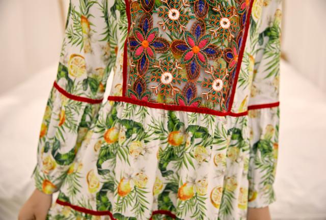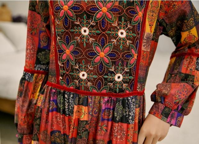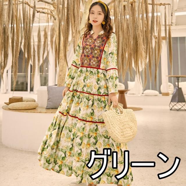 ワンピース ロング丈 長袖 ボヘミアン 4色 レディース エスニック レトロ アジアン エキゾチック リゾート ゆったり 大きめ 大きいサイズ ワイド S М L XL 刺繍 Aライン 花柄 フラワー レモン 小花 マキシワンピース ロングワンピ ランタンスリーブ 赤 レッド 黄色 イエロー グリーン 緑 青 ブルー 華やか ゴージャス 高級感 オシャレ お洒落 かわいい 大人可愛い こなれ感 ゆる 春 秋 冬 20代 30代 40代 旅行 デート 女子会 お出かけ トレンド 流行 映え インスタ 主役