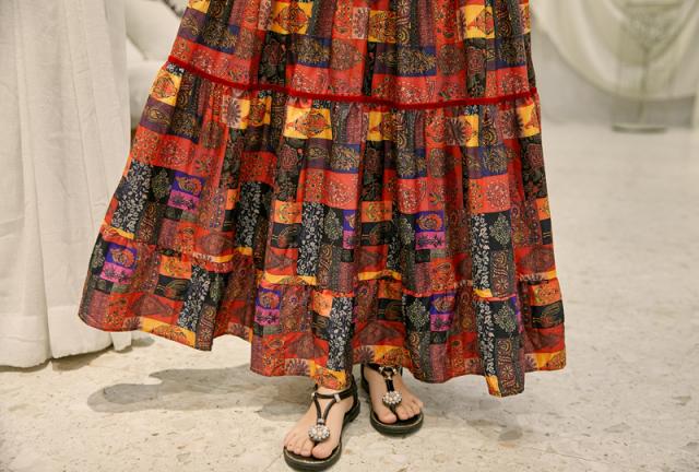 お洒落なボヘミアン柄のロングワンピースです。