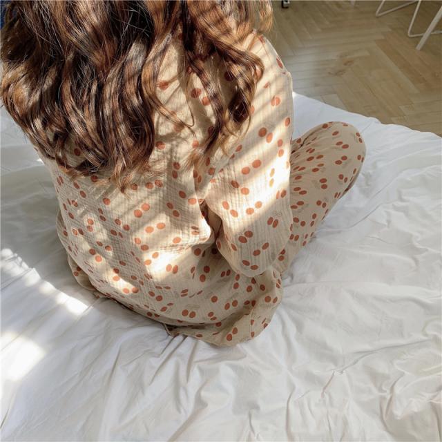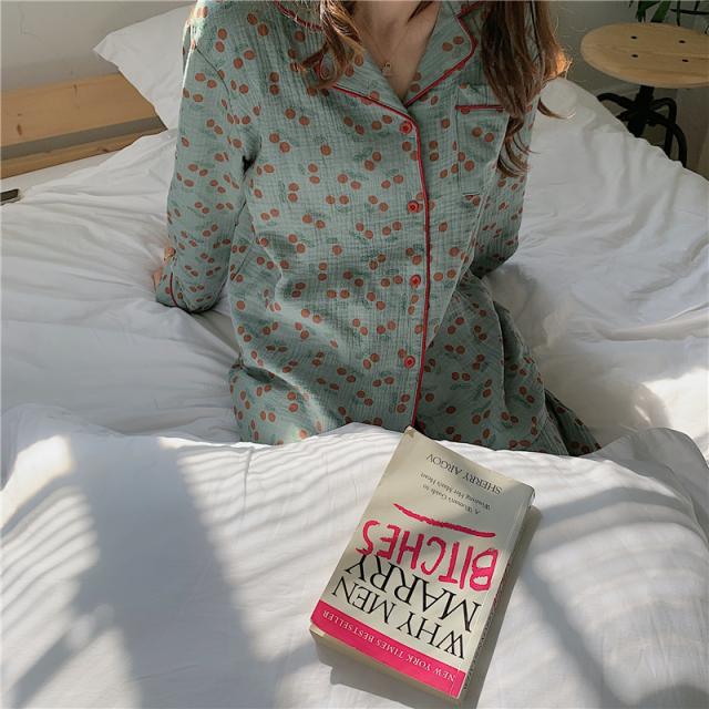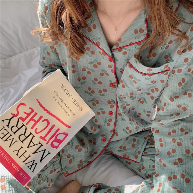 パジャマ 上下セット 長袖 チェリー レディース 薄手 春 秋 冬 さくらんぼ オープンカラー 韓国 トレンド 流行 総柄 かわいい 大人可愛い パンツ ズボン 長ズボン 定番 王道 旅行 モテ お泊り デート 女子会 お揃い プレゼント くすみカラー ベージュ 黄色 イエロー 水色 ブルー 青 緑 グリーン 赤 レッド オシャレ お洒落 ガーリー 量産型 ルームウェア 部屋着 寝巻 前開き シンプル ラフ カジュアル