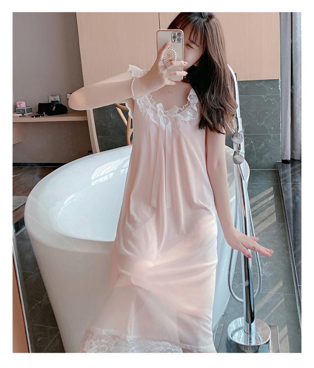 ルームウェア パジャマ レディース ナイトウェア ナイトドレス ネグリジェ 部屋着 キャミワンピース ミモレ丈 膝下 袖なし ノースリーブ キャミソールワンピ Uネック Iライン レース フリル シフォン 透け感 シースルー かわいい 大人可愛い きれいめ 上品 おしゃれ お洒落 ラブリー キュート ガーリー セクシー とろみ感 リボン S M L XL 白 ホワイト ピンク 桃色 無地 オールシーズン シーズンレス 春 夏 10代 20代 30代 40代 ママ お泊り 旅行 普段使い プレゼント ギフト