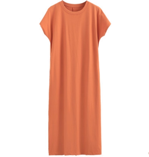 ワンピース ロング丈 袖あり 半袖 フレンチスリーブ ラウンドネック ワイド スマート バックスリット ポケット 綿 大人可愛い シンプル カジュアル おしゃれ 大人女子 こなれ感 ラフ ルーズ 主役級 存在感 抜け感 無地 春 夏 秋 10代 20代 30代 レディース 女性用 デート お出かけ 公園デビュー 女子会 休日 イベント リゾート 旅行 海 プール 着回し 普段使い 重ね着 韓国系 オルチャン ファッション コーデ スタイル 体系カバー 定番 M L XL ウォームオレンジ ベージュ