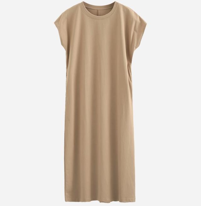 フレンチスリーブのロングTシャツワンピース。