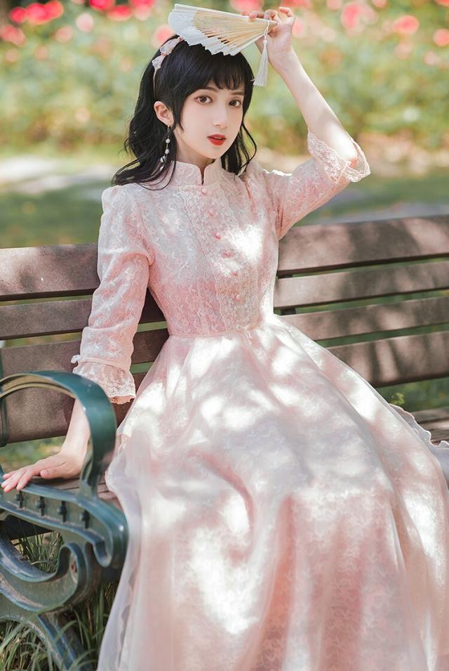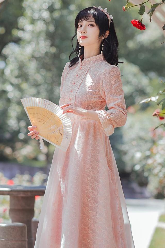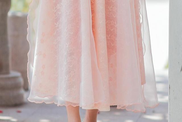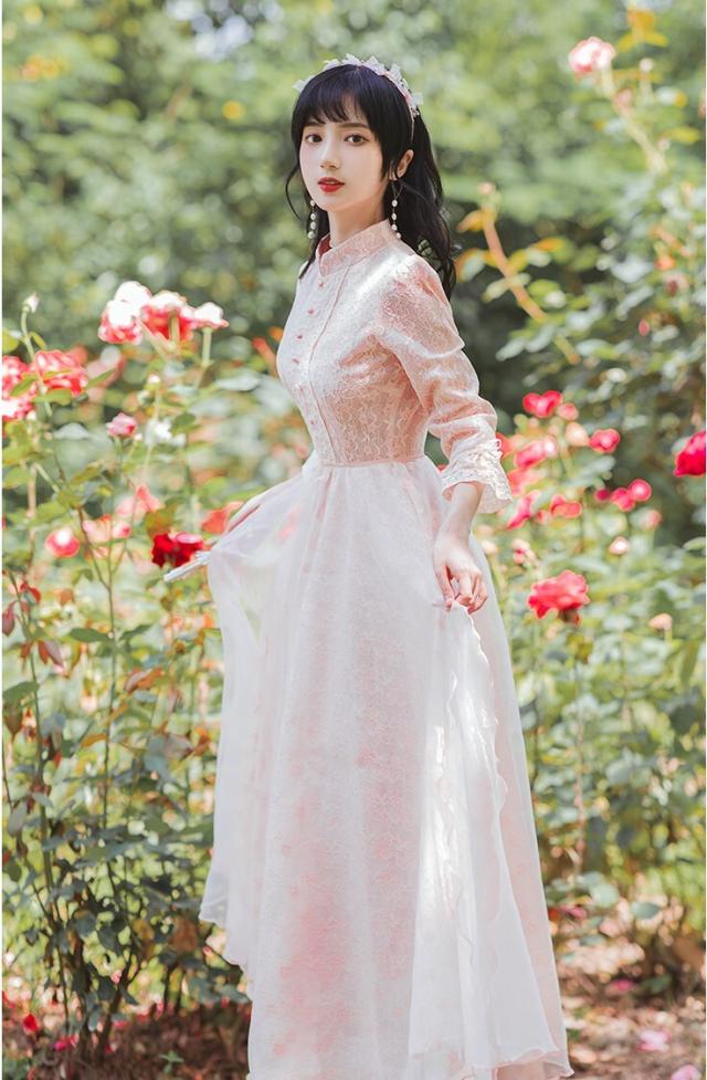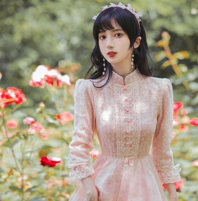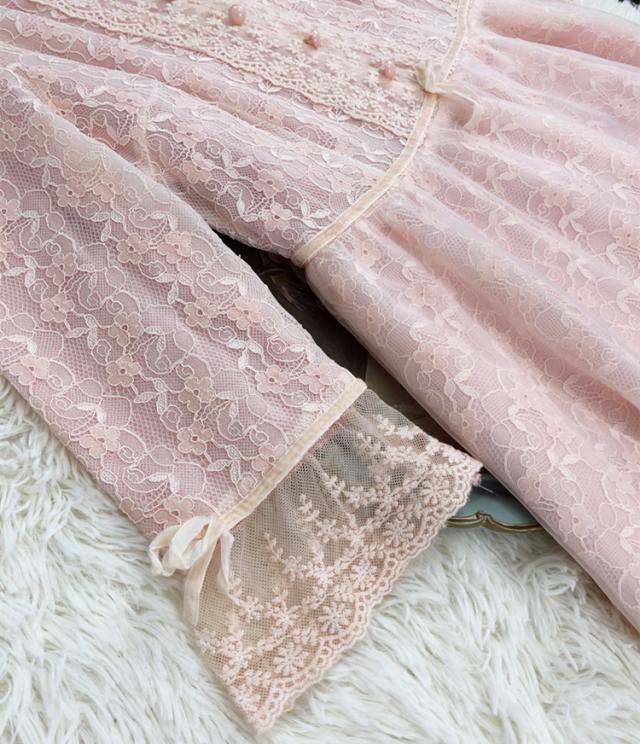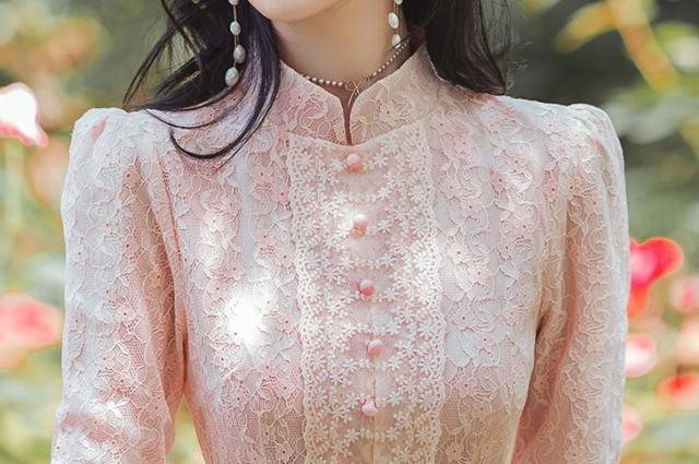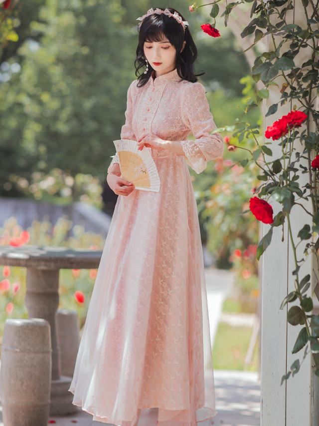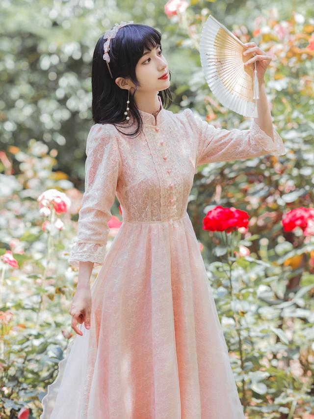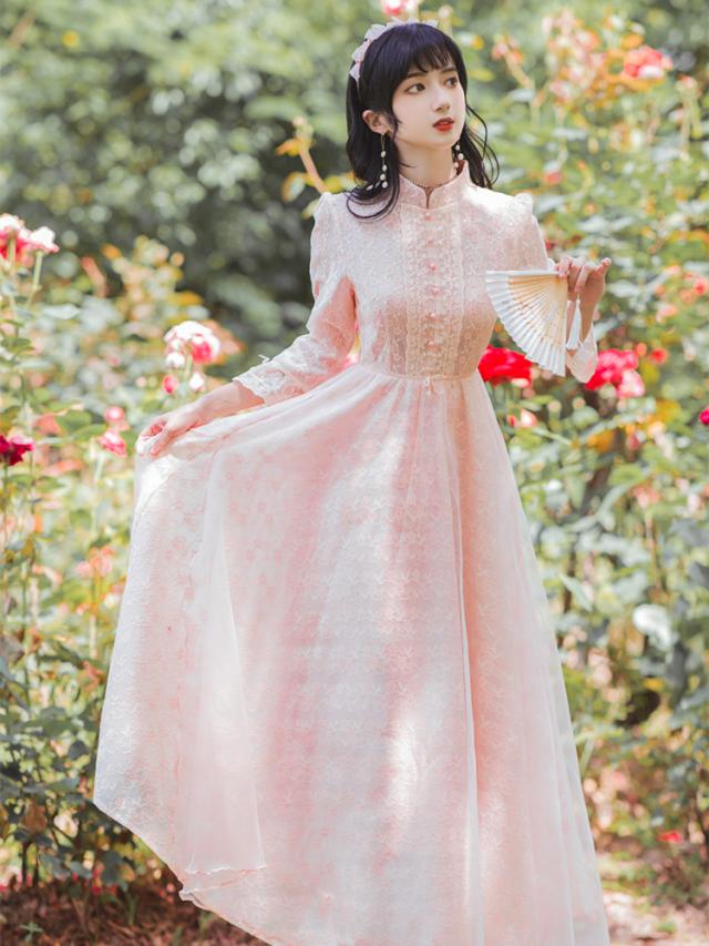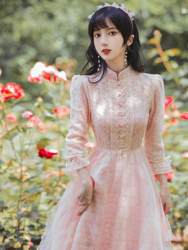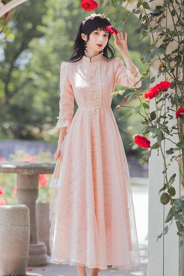 ワンピース フレアワンピース ワンピドレス ミモレ丈 ロング丈 7分袖 七分袖 パフスリーブ スタンドカラー フレア レース 刺繍 シフォン ウエストマーク ウエストリボン 透け感 かわいい 大人可愛い きれいめ 上品 おしゃれ アジアン ラブリー キュート ガーリー 主役級 存在感 無地 柄 花柄 小花柄 フラワー 春 秋 結婚式 二次会 披露宴 10代 20代 レディース 女性用 お出かけ 休日 パーティー イベント ホテル レストラン 韓国系 オルチャン ファッション S M L XL ピンク