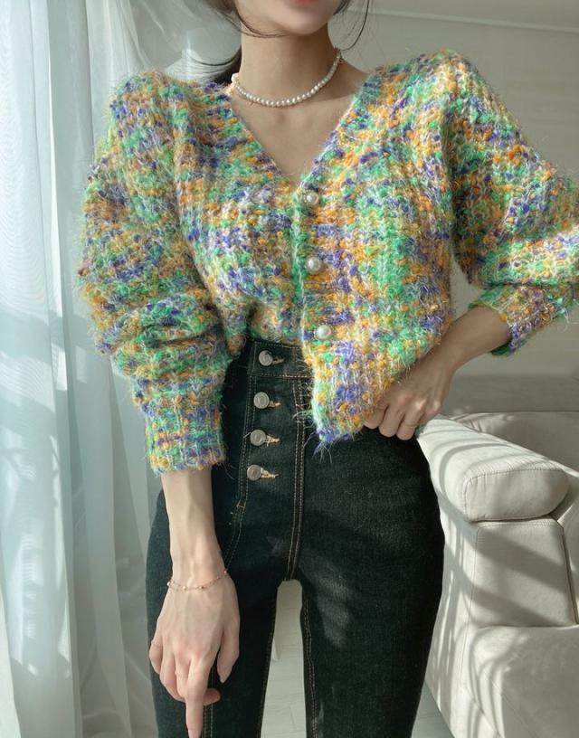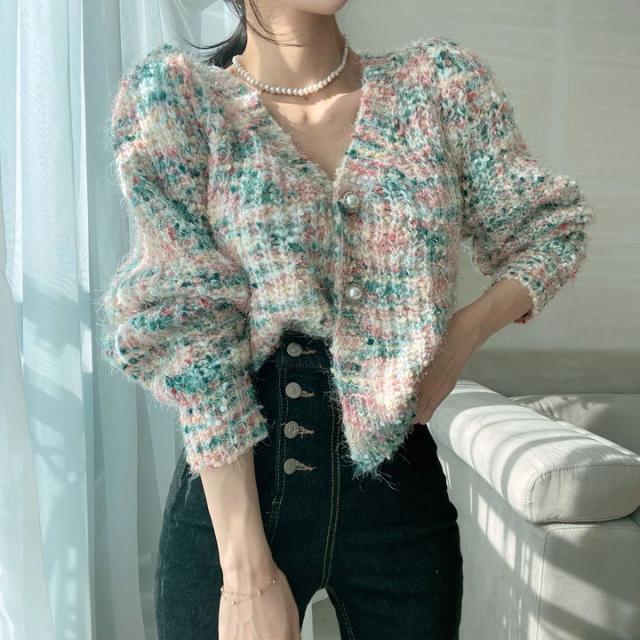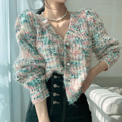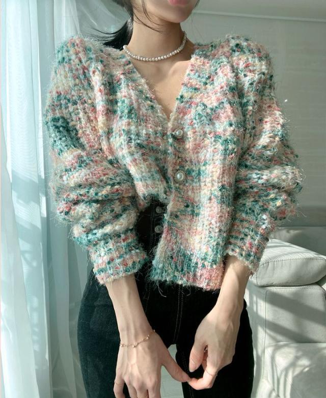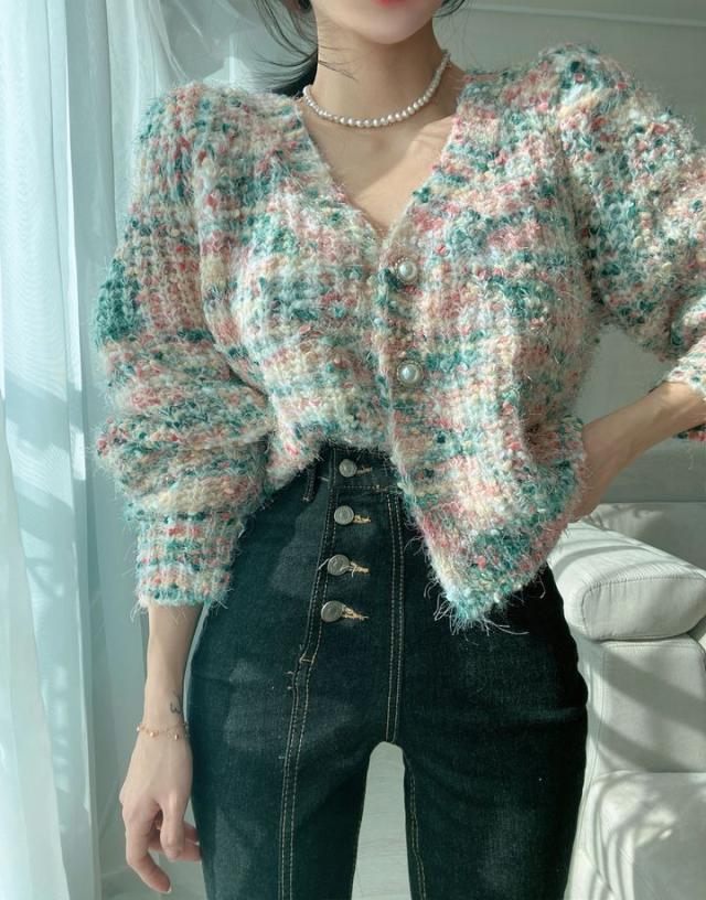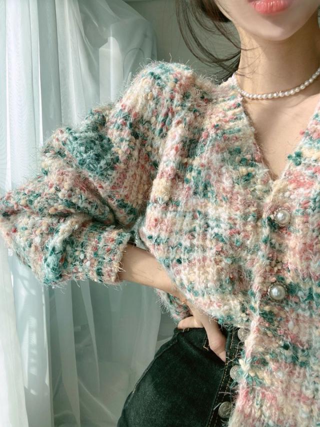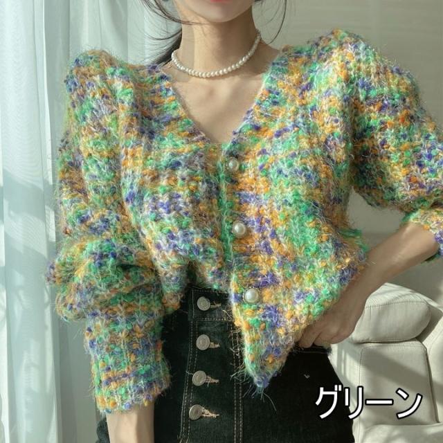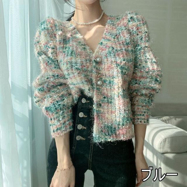 トップス カーディガン ニット 3色 ツイード風 レディース ゆったり 大きめ 長袖 きれいめ エレガント 上品 清楚 水色 ブルー グリーン 緑 青 ベージュ シンプル カジュアル 体型カバー 細見え 着痩せ 秋 冬 春 かわいい 大人可愛い ガーリー オシャレ お洒落 ОL 通勤 デート モテ 女子会 ゆる こなれ感 防寒 あったか 暖かい 休日 お出かけ ショッピング 10代 20代 30代 40代 前開き ルーズ ゆる 韓国 トレンド 流行 Vネック 手触り 着心地 春 秋 冬 パール ボタン