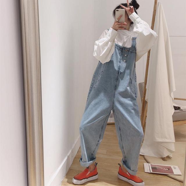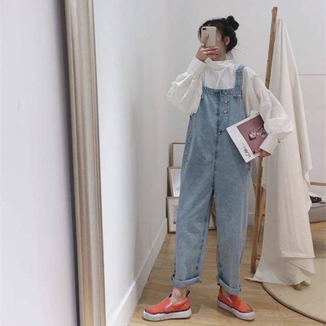 ボトムス パンツ オールインワン サロペット オーバーオール Gパン ズボン ワイド ポケット ハイウエスト デニム かわいい シンプル カジュアル おしゃれ かっこいい こなれ感 ラフ ラブリー キュート ルーズ 個性的 主役級 存在感 抜け感 無地 春 秋 10代 20代 レディース 女性用 デート お出かけ 公園デビュー 女子会 休日 アウトドア リゾート 着回し 普段使い 重ね着 韓国系 オルチャン ファッション スタイル 体系カバー 脚長 S M L XL 2XL 3XL 4XL 5XL ブルー