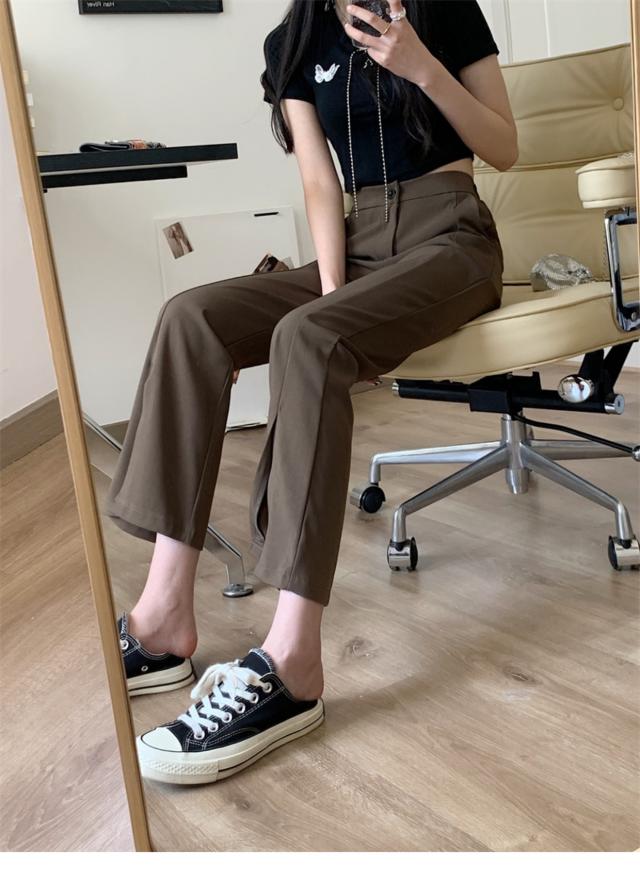 ボトムス レディース スラックス パンツ ワイドパンツ フレアパンツ スリット きれいめ シンプル 大人 上品 おしゃれ お洒落 かっこいい レトロ 大人女子 こなれ感 ラフ メンズライク マニッシュ ボーイッシュ クール 抜け感 S M L XL 黒 ブラック 茶色 ブラウン 無地 10代 20代 30代 40代 50代 ママ OL 通勤 通学 学生 お出かけ 休日 イベント 旅行 定番 美脚 脚長 着回し 普段使い 韓国 オルチャン