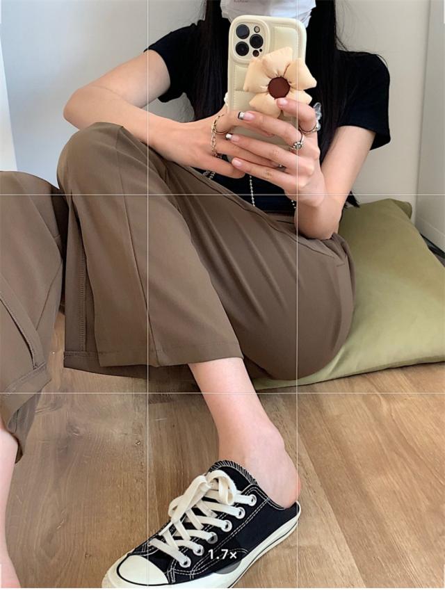 ボトムス レディース スラックス パンツ ワイドパンツ フレアパンツ スリット きれいめ シンプル 大人 上品 おしゃれ お洒落 かっこいい レトロ 大人女子 こなれ感 ラフ メンズライク マニッシュ ボーイッシュ クール 抜け感 S M L XL 黒 ブラック 茶色 ブラウン 無地 10代