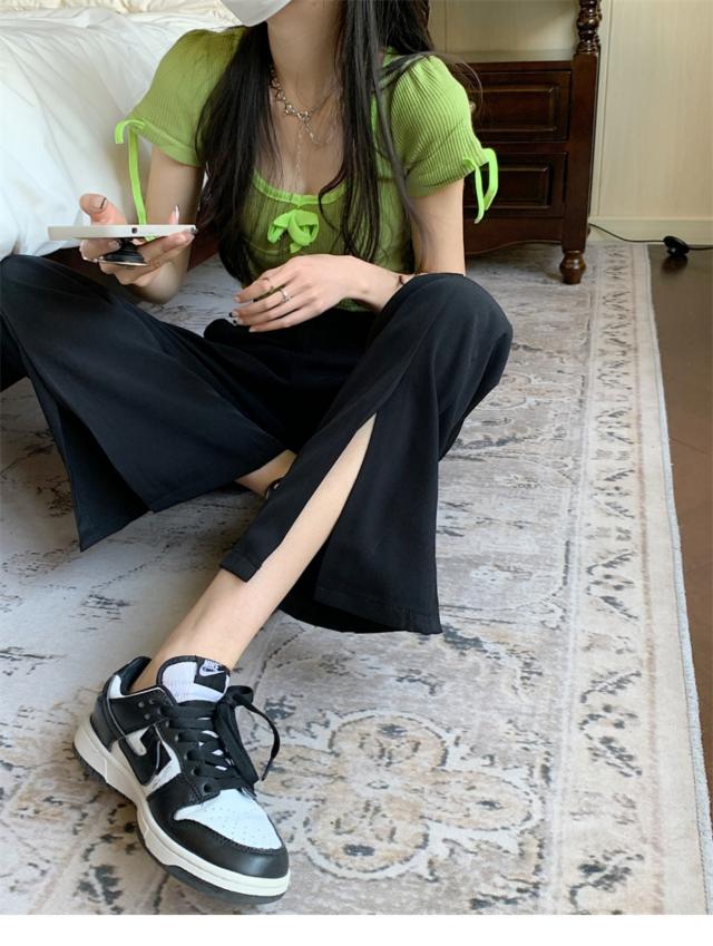 2色カラバリ、ハイウエストスリットフレアパンツ。