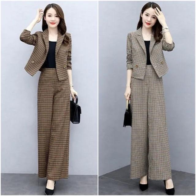 セットアップ ピンチェックパンツスーツ レディース 2点セット 上下セット ツーピース スーツ チェック柄 ショート丈テーラードジャケット ストレートパンツ テーパードパンツ パンツスーツ パンツドレス 茶色 ブラウン アイボリー 大人可愛い きれいめ 上品 エレガント フォーマル ガーリー マニッシュ レトロ 春 夏 秋 冬 二次会 お呼ばれ ビジネス オフィス OL 通勤 学生 通学 デート お出かけ パーティー イベント 女子会 休日 体型カバー トレンド ゆったり くすみカラー アースカラー