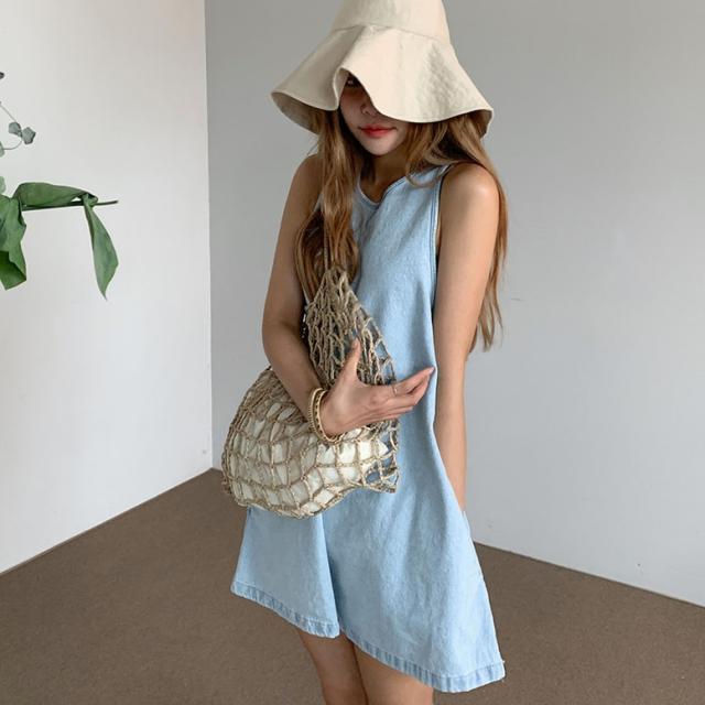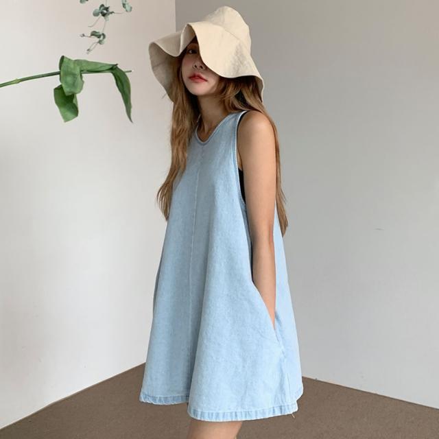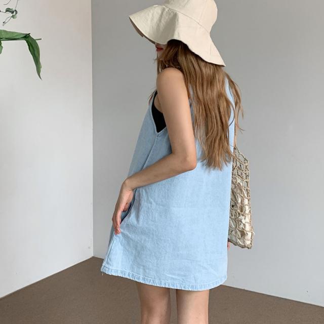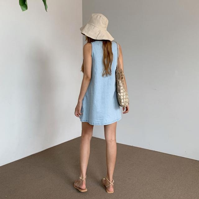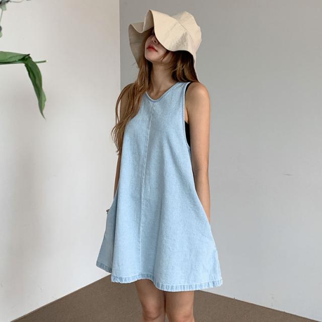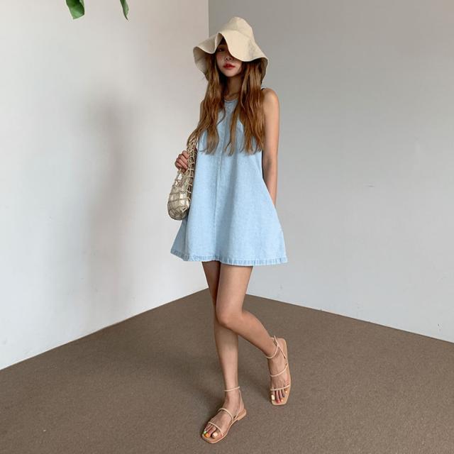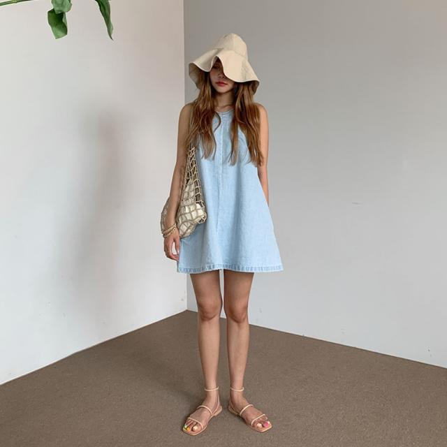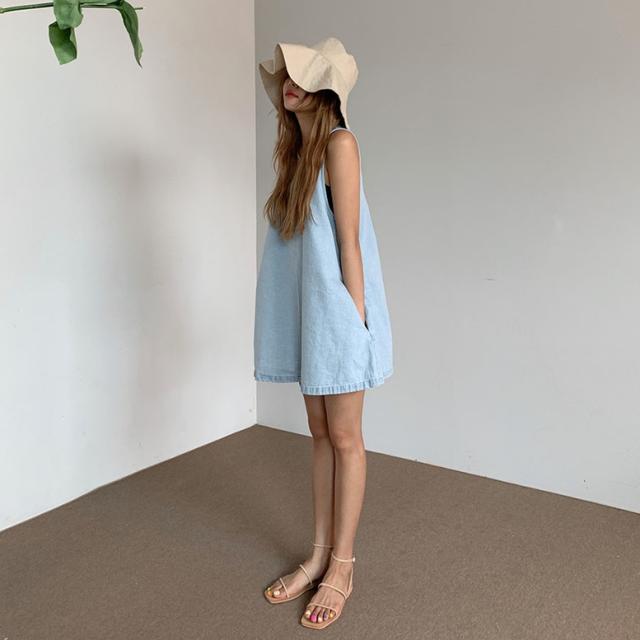 ワンピース デニムフレアノースリーブミニワンピース レディース デニムワンピース ノースリーブワンピース ミニワンピース フレアワンピース デニム ドレス ショート丈 袖なし ノースリーブ 水色 ライトブルー 大人可愛い きれいめ フォーマル ガーリー マニッシュ ルーズ