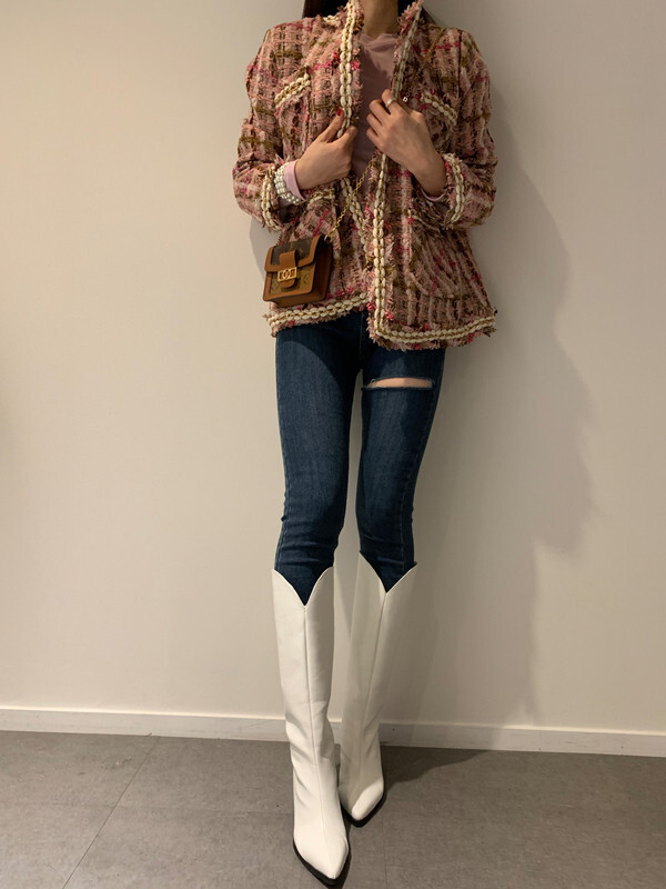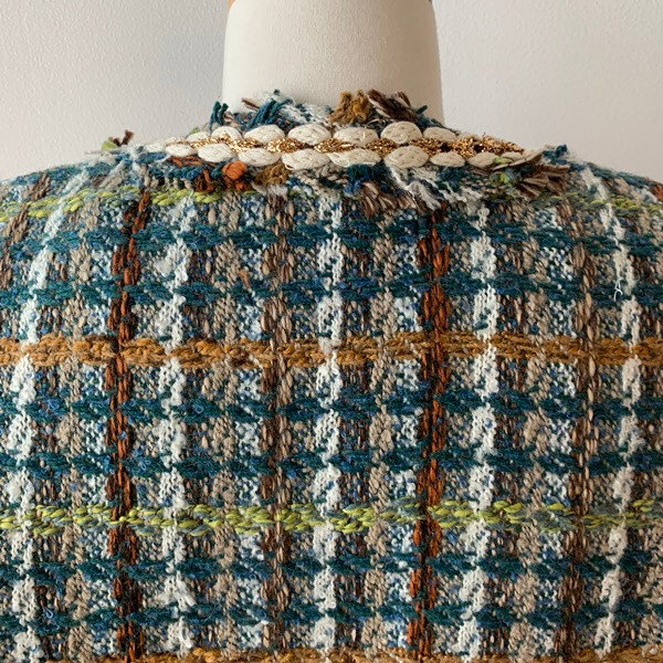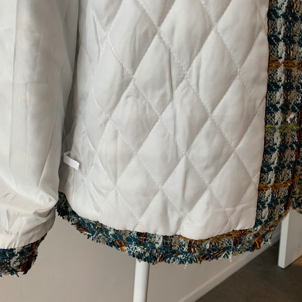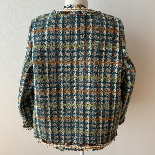 2色カラバリノーカラーツイードジャケット。