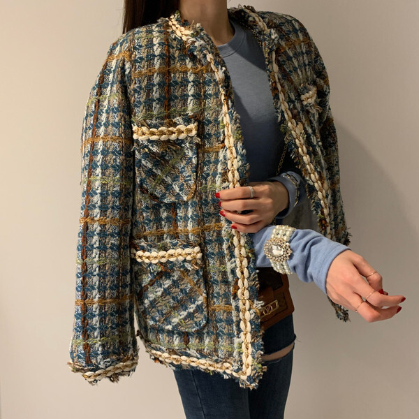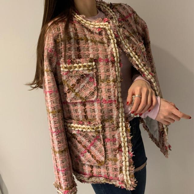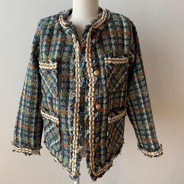 アウター レディース ジャケット ツイードジャケット 長袖 ラウンドネック 襟なし ノーカラージャケット ボタン 前開き 刺繍 チェック もこもこ モコモコ ふわふわ ポケット かわいい 大人可愛い きれいめ 大人 上品 おしゃれ お洒落 かっこいい 大人女子 こなれ感 個性的 クール 存在感 抜け感 S M L ピンク グリーン ブルー 水色 緑 春 秋 冬 10代 20代 30代 40代 50代 ママ オフィス ビジネス OL 通勤 学生 通学 デート お出かけ 女子会 休日 パーティー 旅行