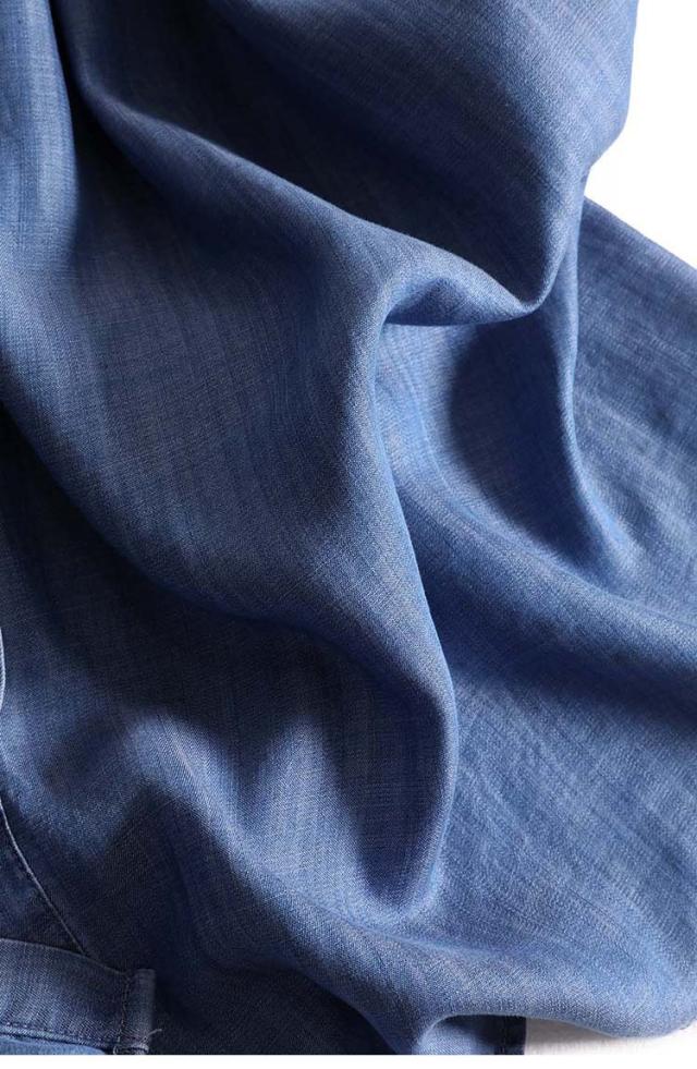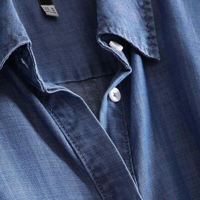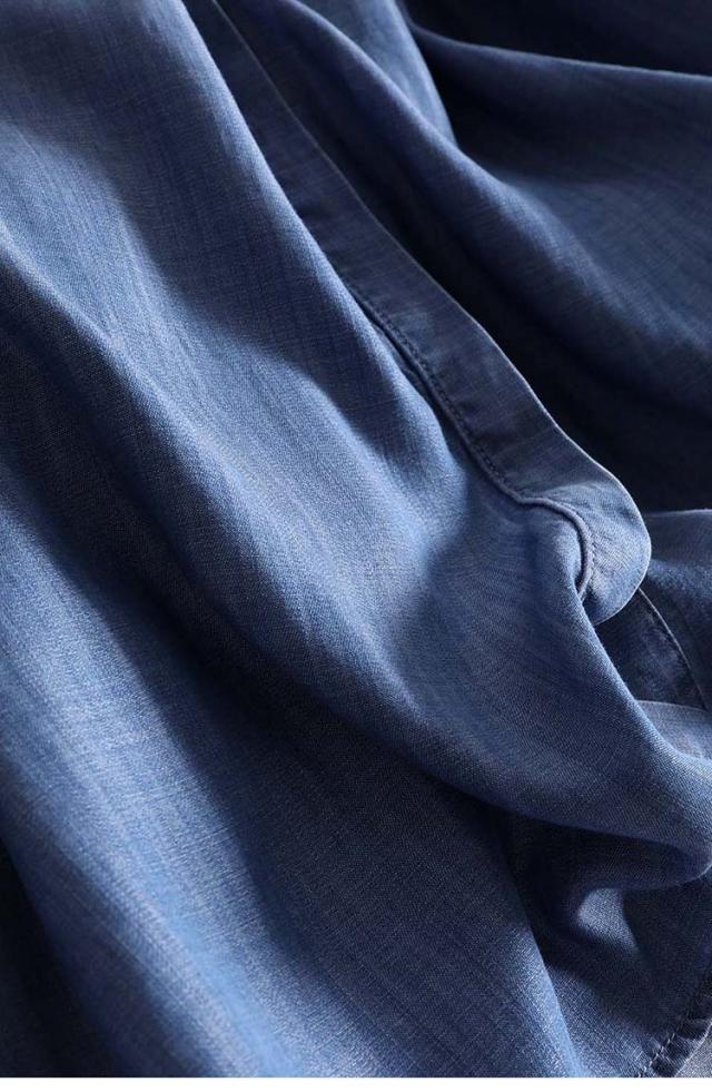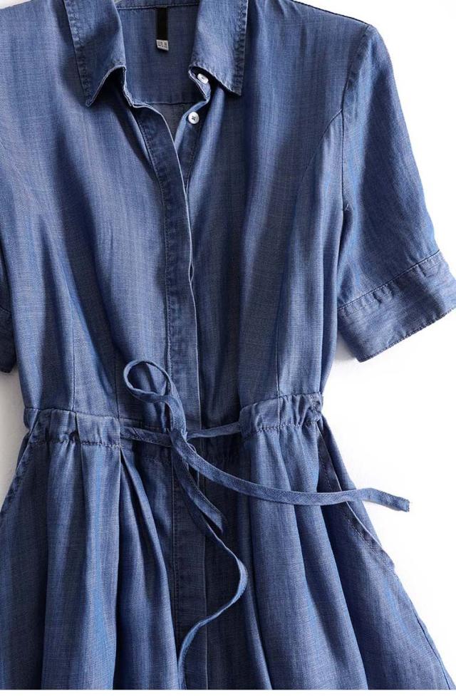 ソフトなブルーデニムの半そでシャツワンピース。