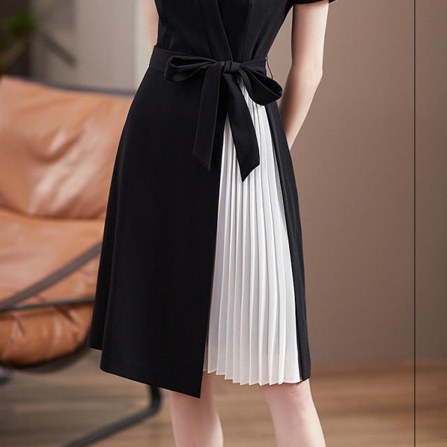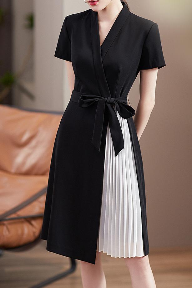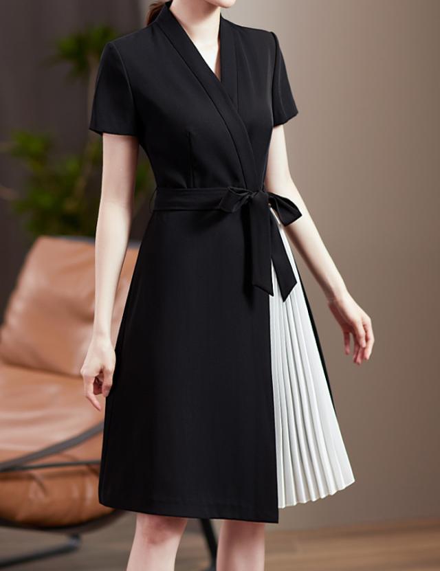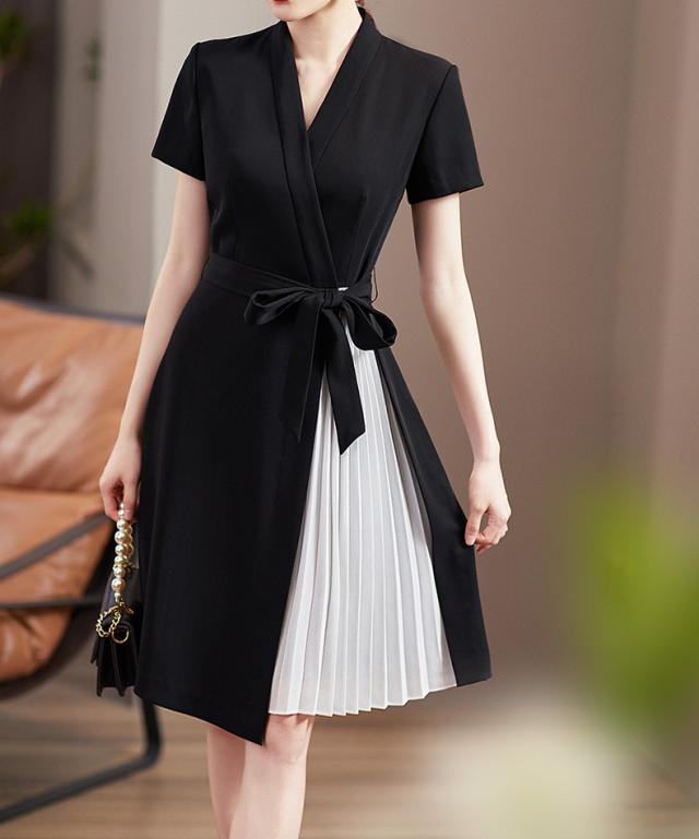 夏 エレガント プリーツドレス ワンピース ワンピドレス ミディアム丈 袖あり 半袖 Vネック 襟なし スリム 細身 Aライン レギュラー ふわふわ 透け感 ミドルウエスト タイプA ポリエステル 薄手 異素材MIX ポリウレタン 大人可愛い きれいめ カジュアル 大人 お洒落 かっこいい 大人女子 メンズライク キュート エレガント 無地 夏 30代 レディース 女性用 ママ オフィス ビジネス OL 通勤 デート お泊まり イベント レストラン 普段使い コーデ インスタ映え L XL 画像1