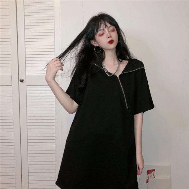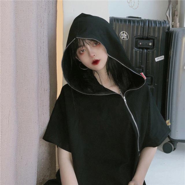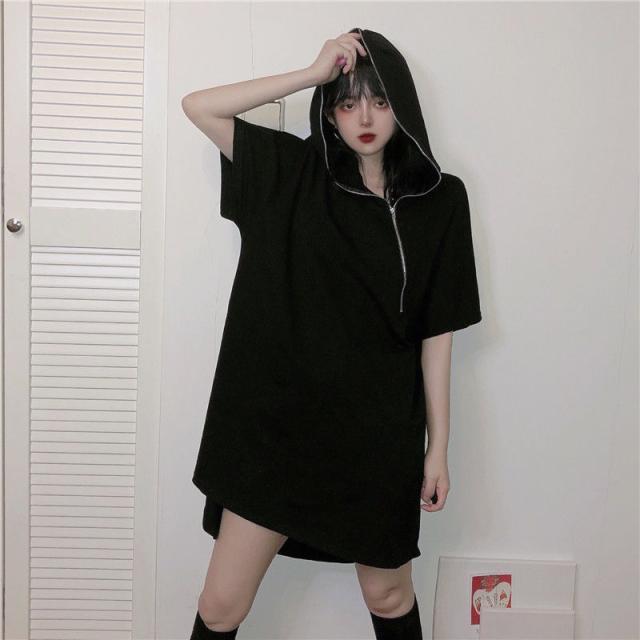 夏 フード付き Tシャツ トップス ワンピース Tシャツ 上着 ミニスカート ミディアム丈 袖あり 半袖 Vネック 襟付き レギュラー オーバーサイズ ふわふわ フード付き ファスナー 伸縮性 ルーズウエスト ポリエステル 薄手 異素材MIX かわいい シンプル おしゃれ 大人女子 ラブリー ルーズ エレガント 無地 夏 10代 20代 レディース 女性用 ママ 女の子 OL 学生 お出かけ お泊まり イベント 普段使い ファッション 楽ちん インスタ映え L XL 2XL 3XL 4XL ブラック