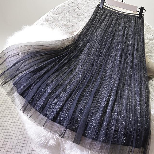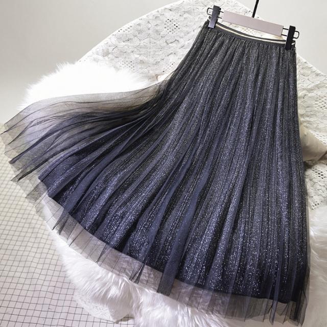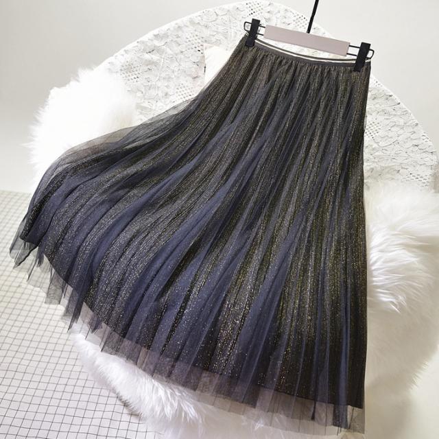 スカート チュール ロングスカート ミモレ丈 Aライン プリーツ レディース きれいめ 上品 エレガント 高級感 かわいい 大人可愛い 無地 ゴールド シルバー ブラック 黒 美脚 脚長 着回し 休日 お出かけ 買い物 女子会 デート モテ パーティー お呼ばれ 薄手 オールシーズン 春 夏 秋 冬 ガーリー フェミニン シック オシャレ お洒落 こなれ感 膝丈 膝下 20代 30代 40代 50代 ラメ キラキラ 主役 存在感 光沢 ふんわり ゴージャス ナイト ウエストゴム 透け感 ドレス