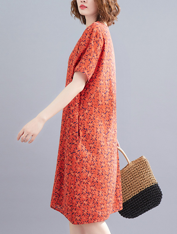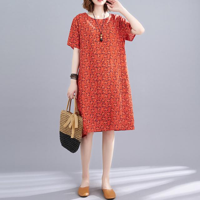 夏 リネン ワンピース スカート ワンピース プルオーバー ミニスカート ワンピドレス 袖あり 半袖 ラウンドネック 襟なし Aライン レギュラー ドレープ ふわふわ 透け感 タイプA ルーズウエスト 綿 リネン 薄手 異素材MIX かわいい 大人可愛い シンプル お洒落 大人女子 スポーティー ラブリー 花柄 夏 レディース 女性用 ママ 女の子 OL 学生 デート 休日 イベント ガーデン 普段使い スタイル 楽ちん インスタ映え M L XL 2XL グリーン オレンジ